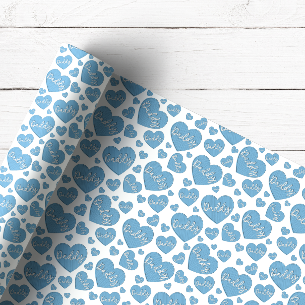 DADDY EMBROIDERED EFFECT BLUE HEARTS | PREMIUM LEATHERETTE FABRIC
