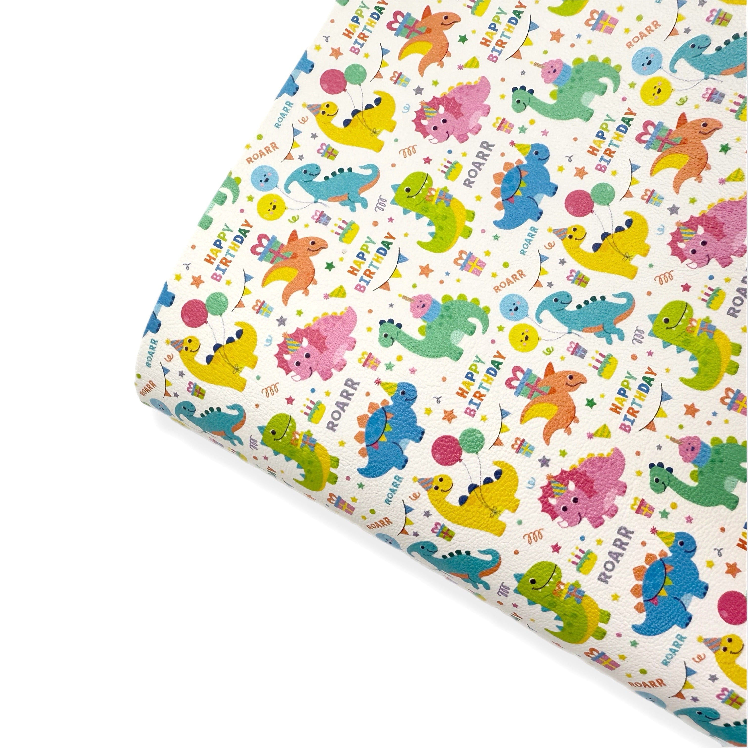 Dino Happy Birthday Premium Faux Leather Fabrics