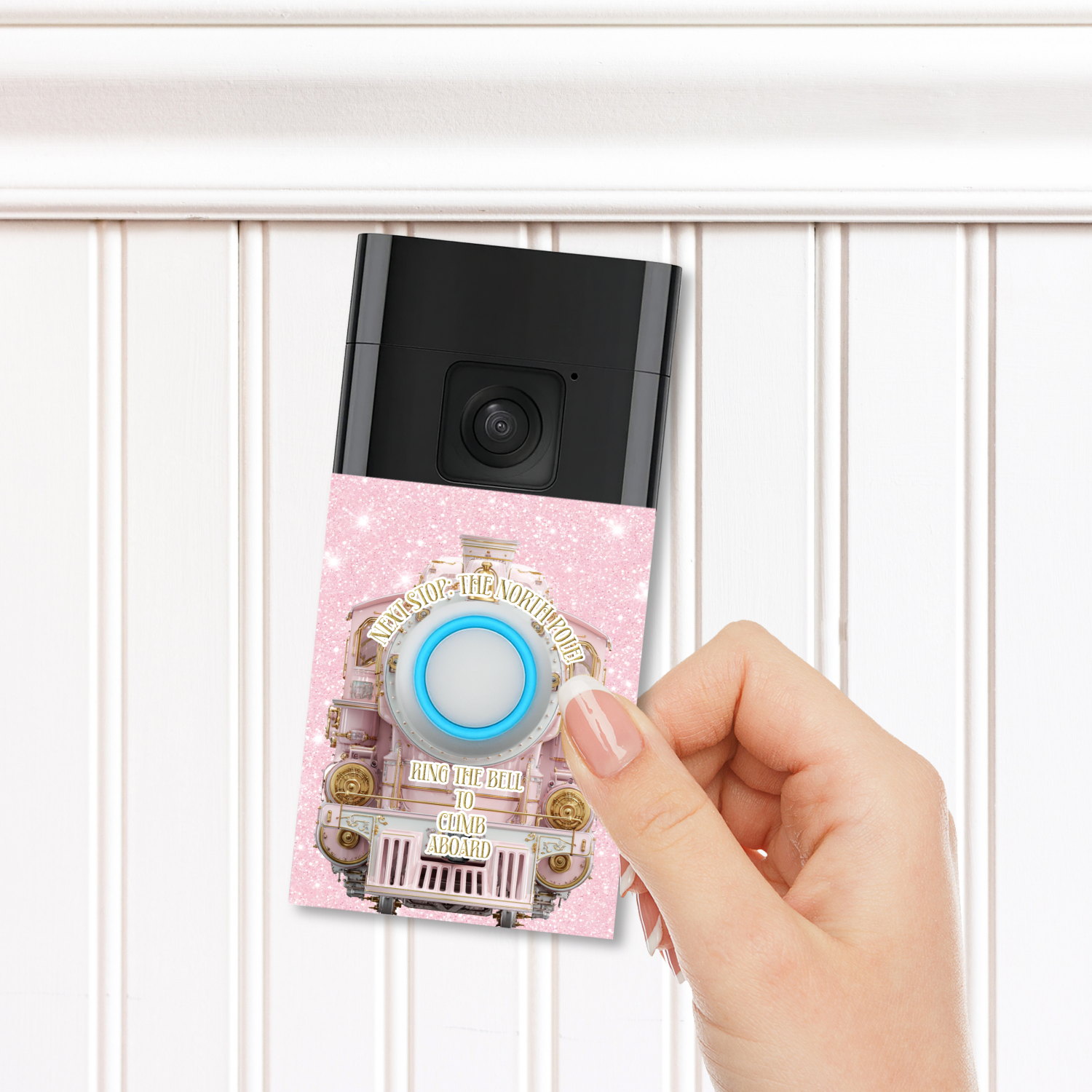 DOORBELL STICKER - RING 2ND GEN- PINK NORTH POLE EXPRESS- UV DECAL