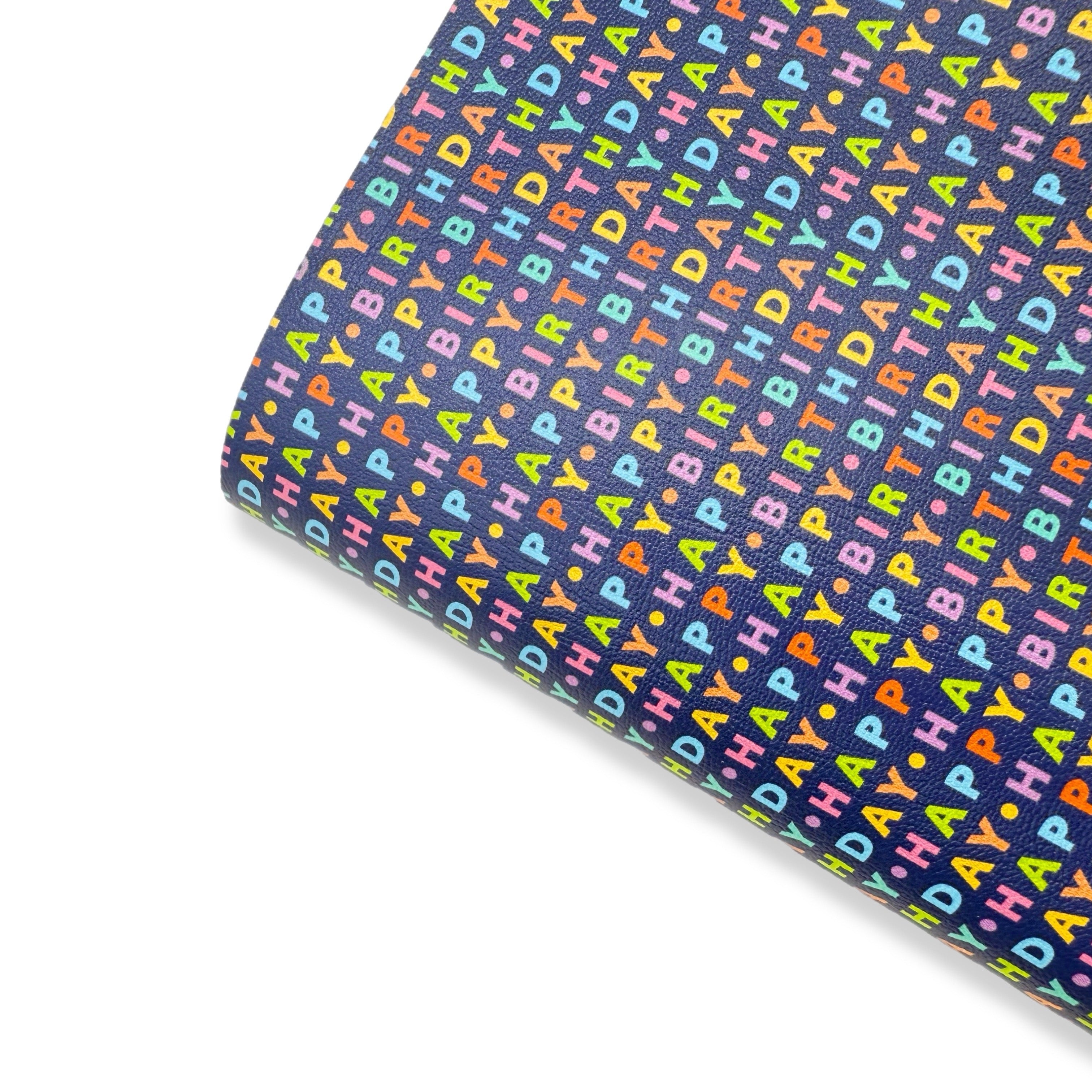 Happy Birthday Navy Premium Faux Leather Fabrics