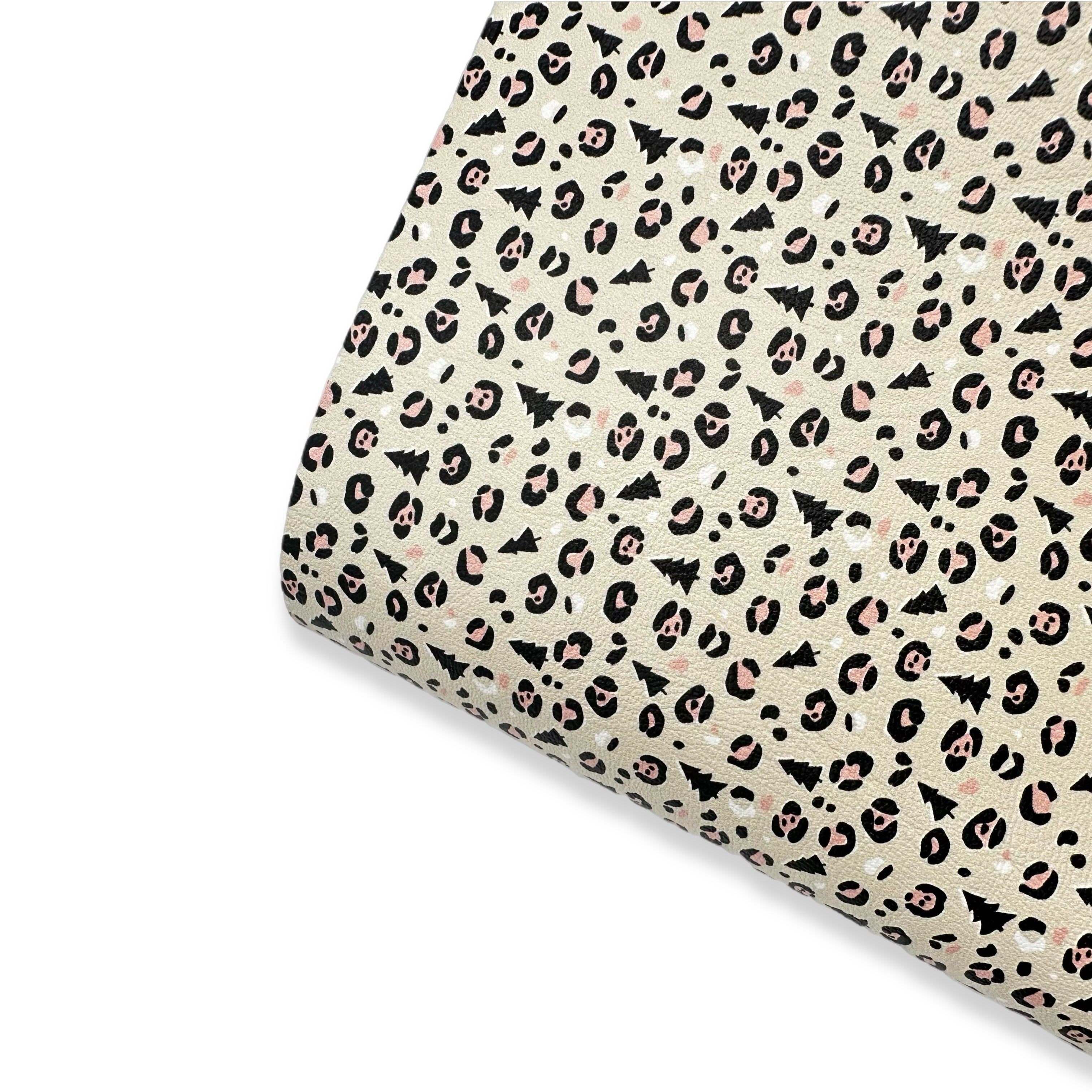 Leopard Xmas Trees Premium Faux Leather Fabric