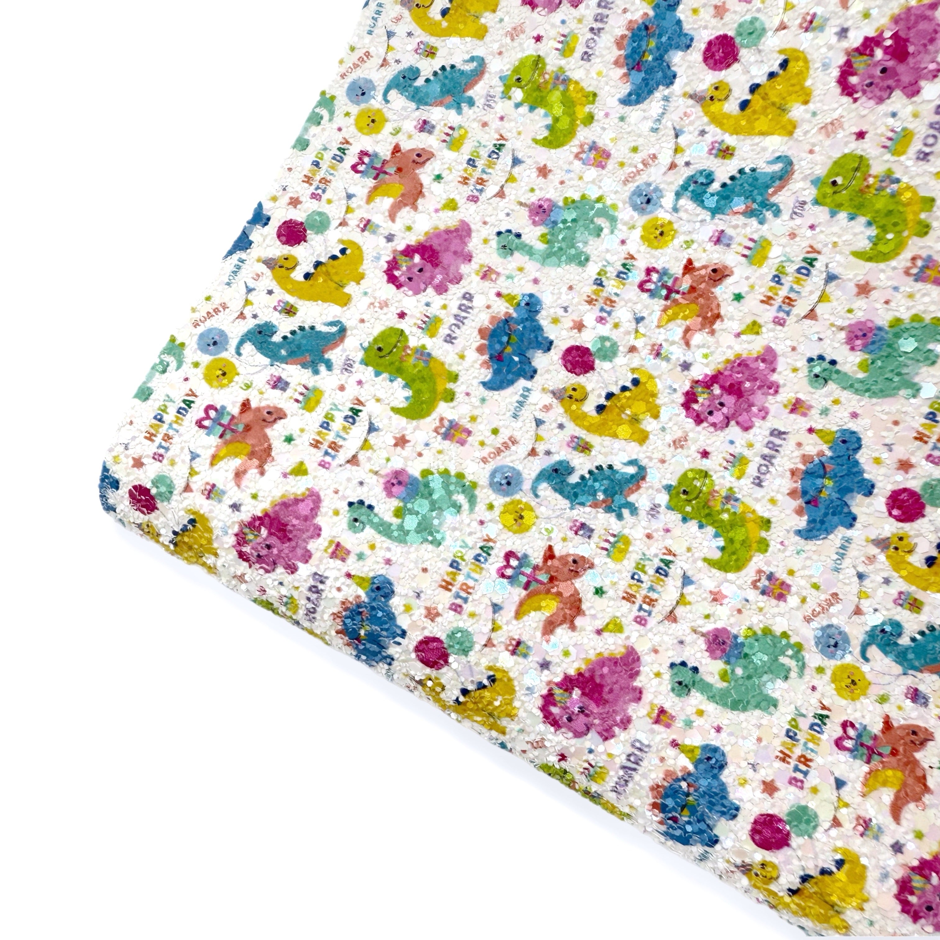 Limited Edition Dino Happy Birthday Chunky Glitter Fabric