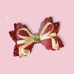Red & Gold Party Glitter Gift Bows 3.5” | Pre Cut DIY Hair Bow Loops
