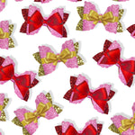 PARTY PRINCESS FAUX GLITTER RIBBON BOW 3.5” | PRE CUT DIY HAIR BOW LOOPS