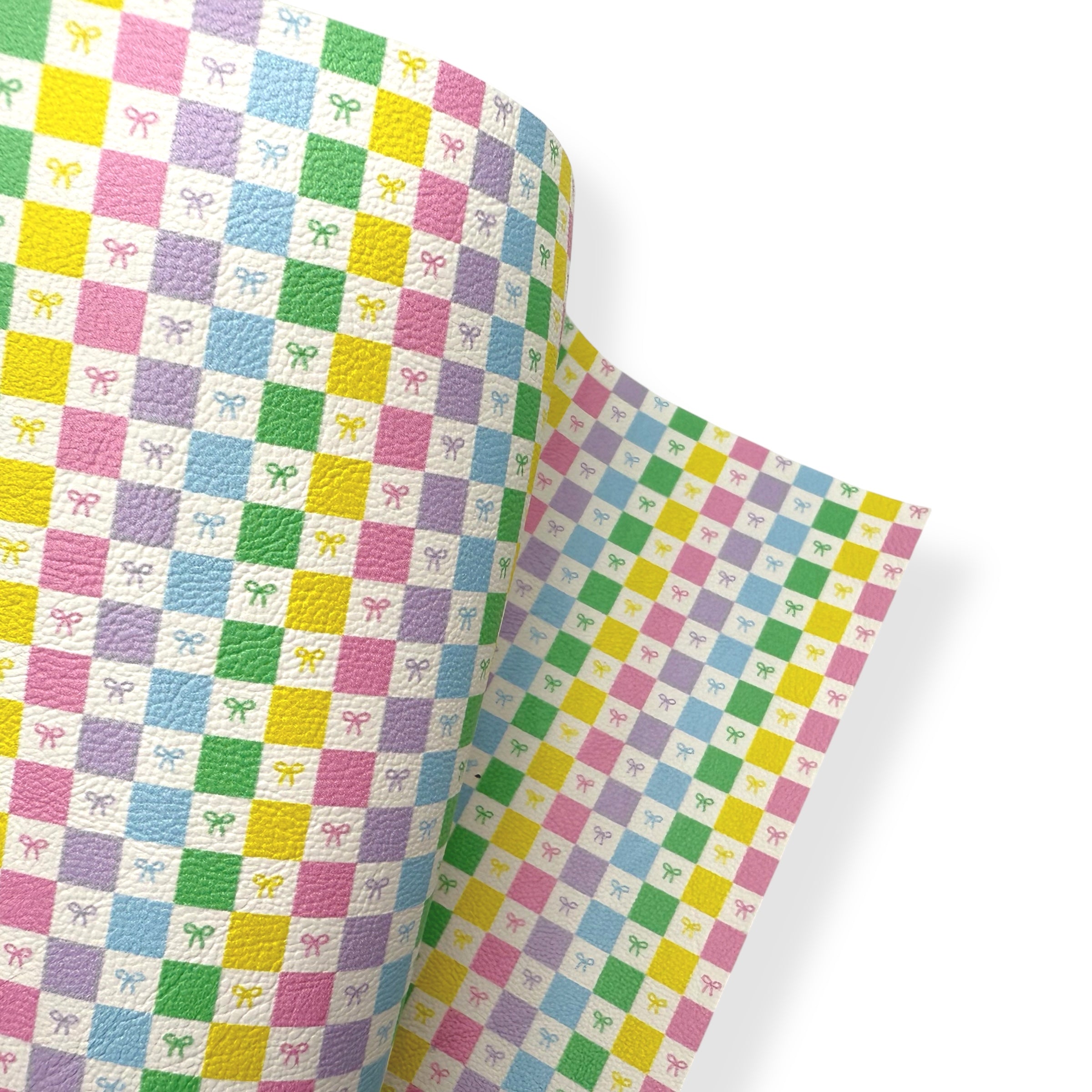 PASTEL BOW CHECK PREMIUM FAUX LEATHER FABRICS