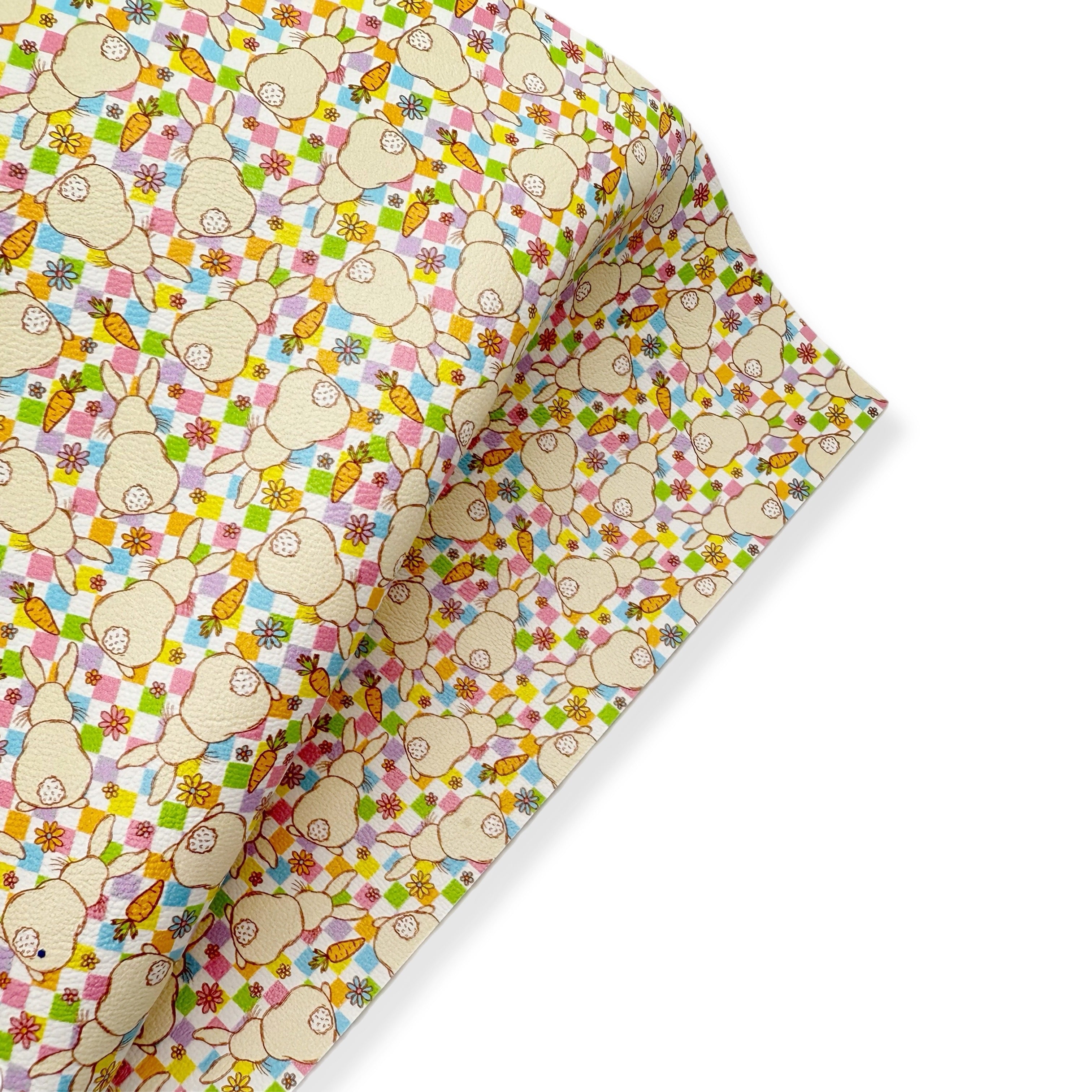 PASTEL CHECKERED BUNNY BUMS PREMIUM FAUX LEATHER FABRICS