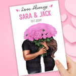 PERSONALISED COUPLES LOVE ALWAYS PINK BOUQUET PREMIUM CARD OR CANVAS PRINTS)