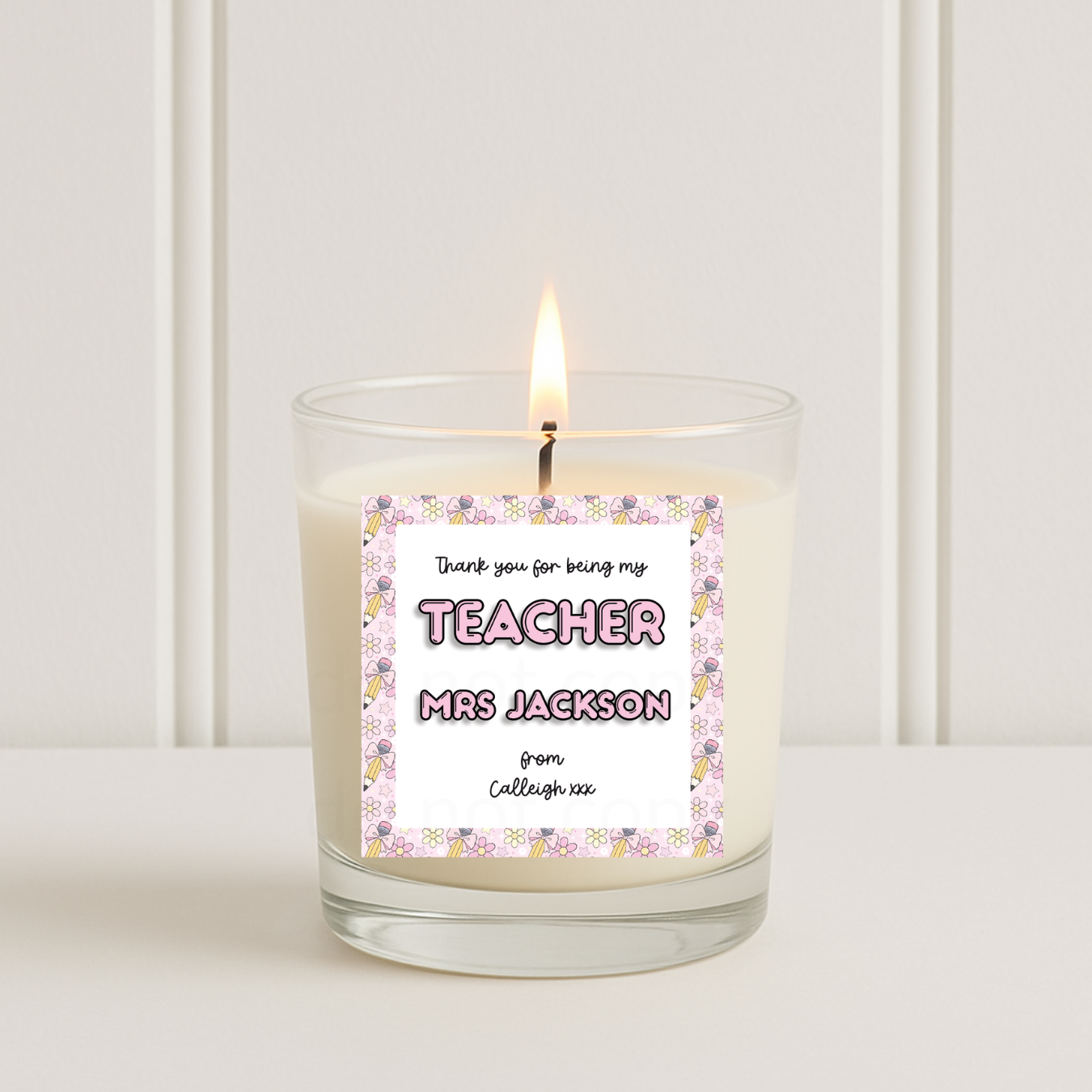 PERSONALISED PINK BOW PENCILS | CANDLE SOLVENT STICKERS