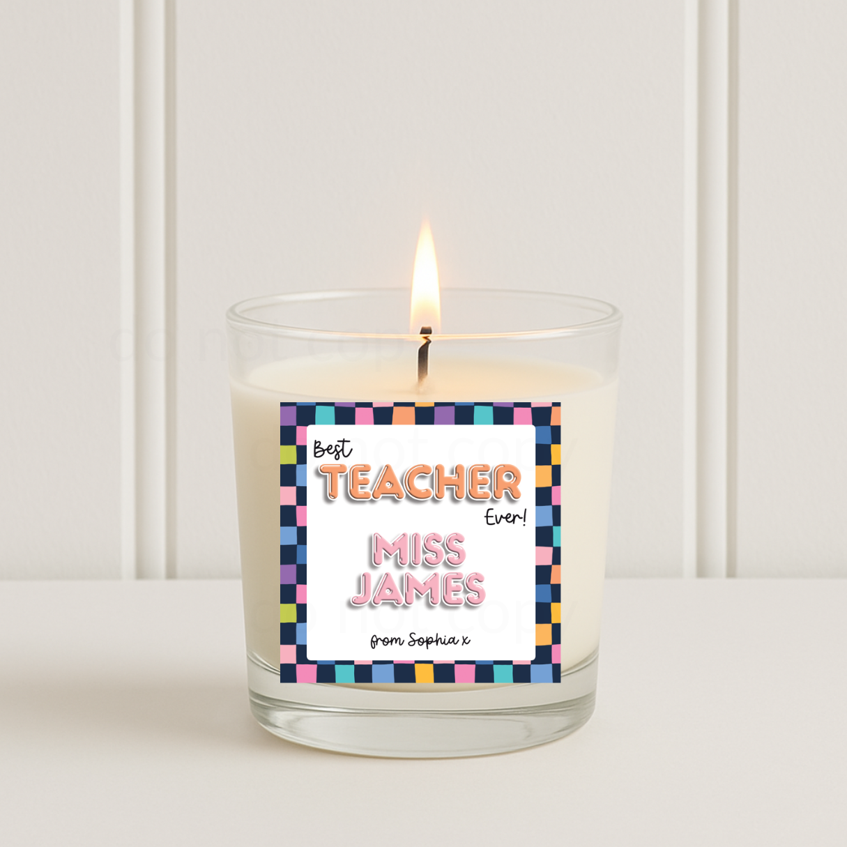 PERSONALISED RETRO CHECK NAVY| CANDLE SOLVENT STICKERS