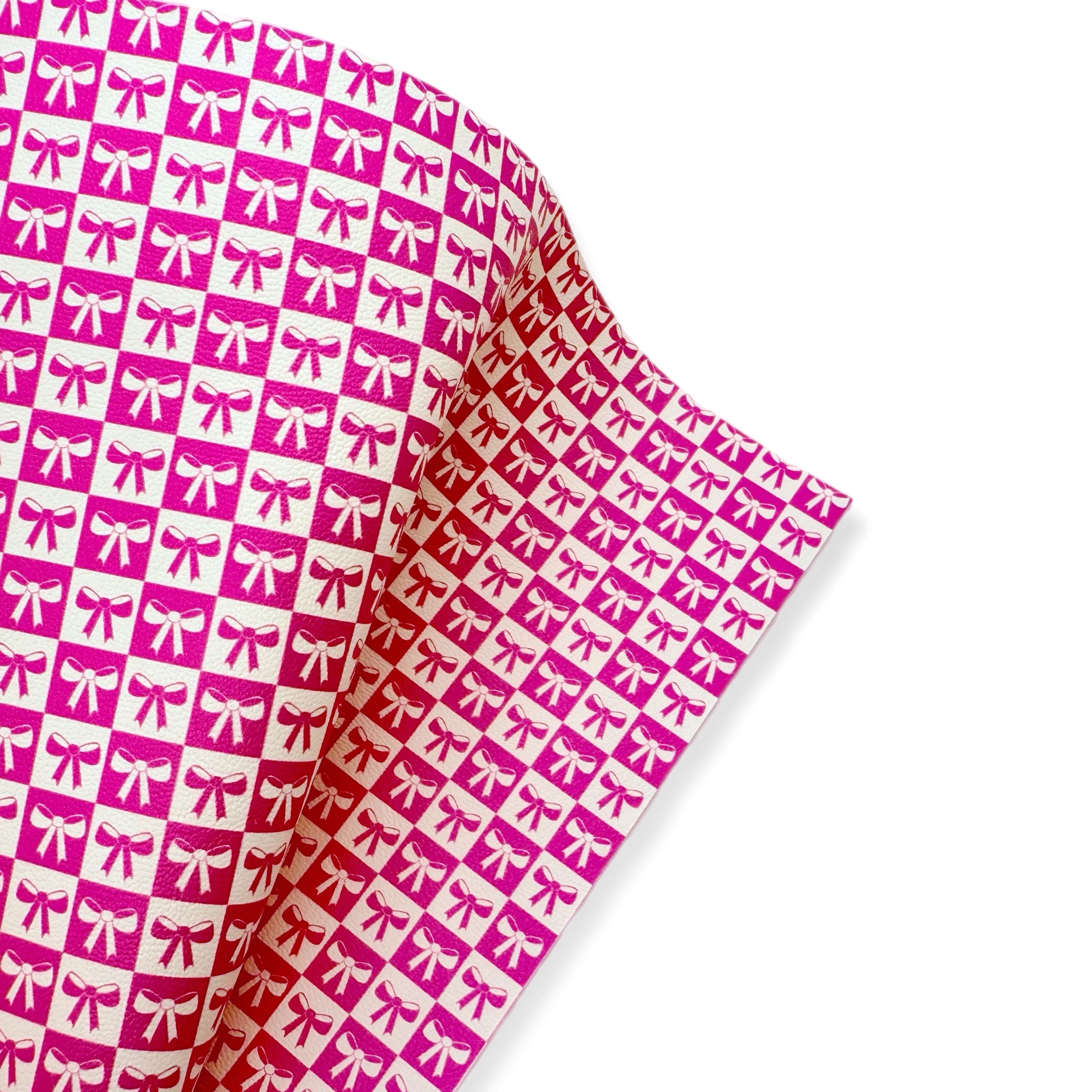 PINK BOW CHECK PREMIUM FAUX LEATHER FABRICS