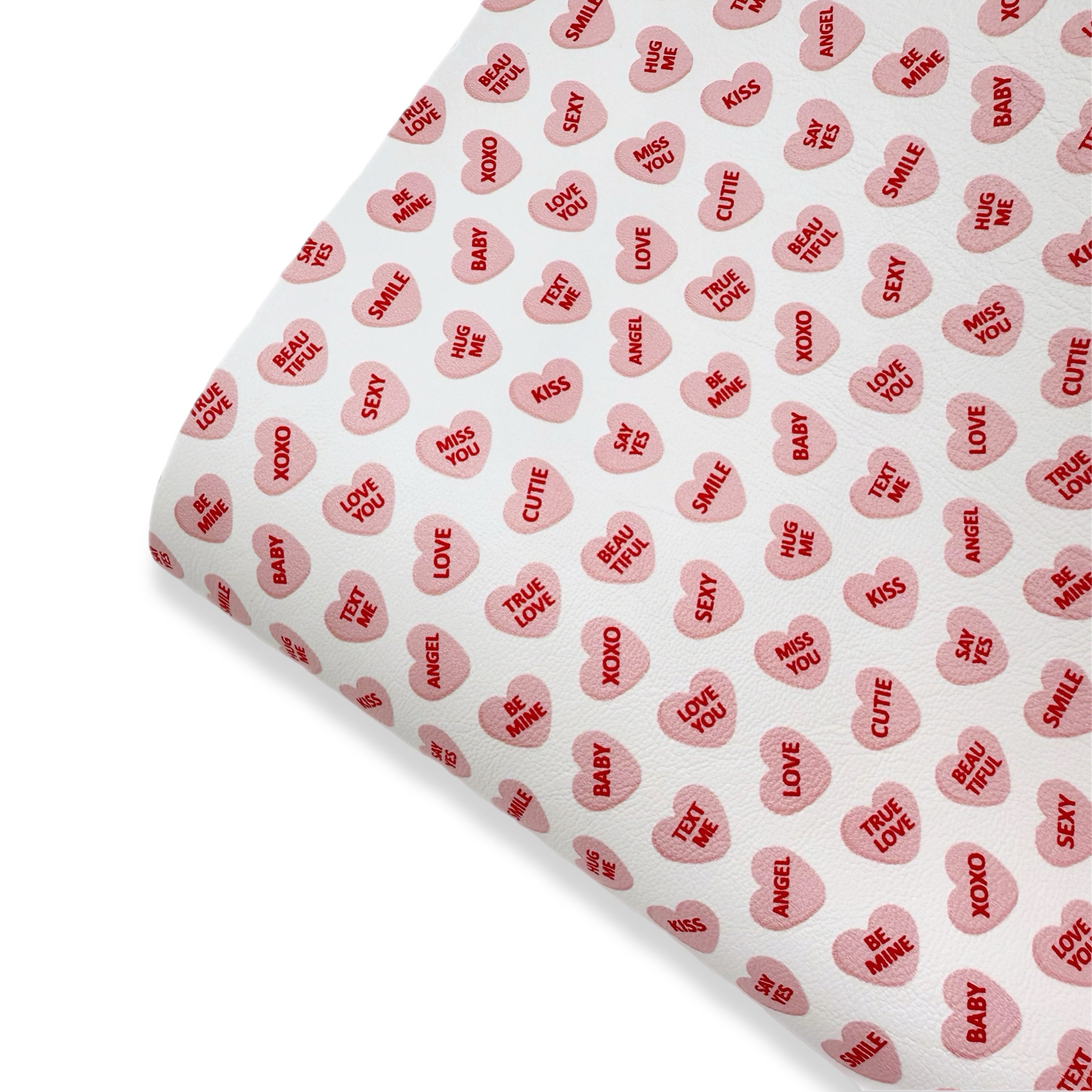 PINK CANDY CONVERSATION HEARTS | PREMIUM FAUX LEATHER FABRICS