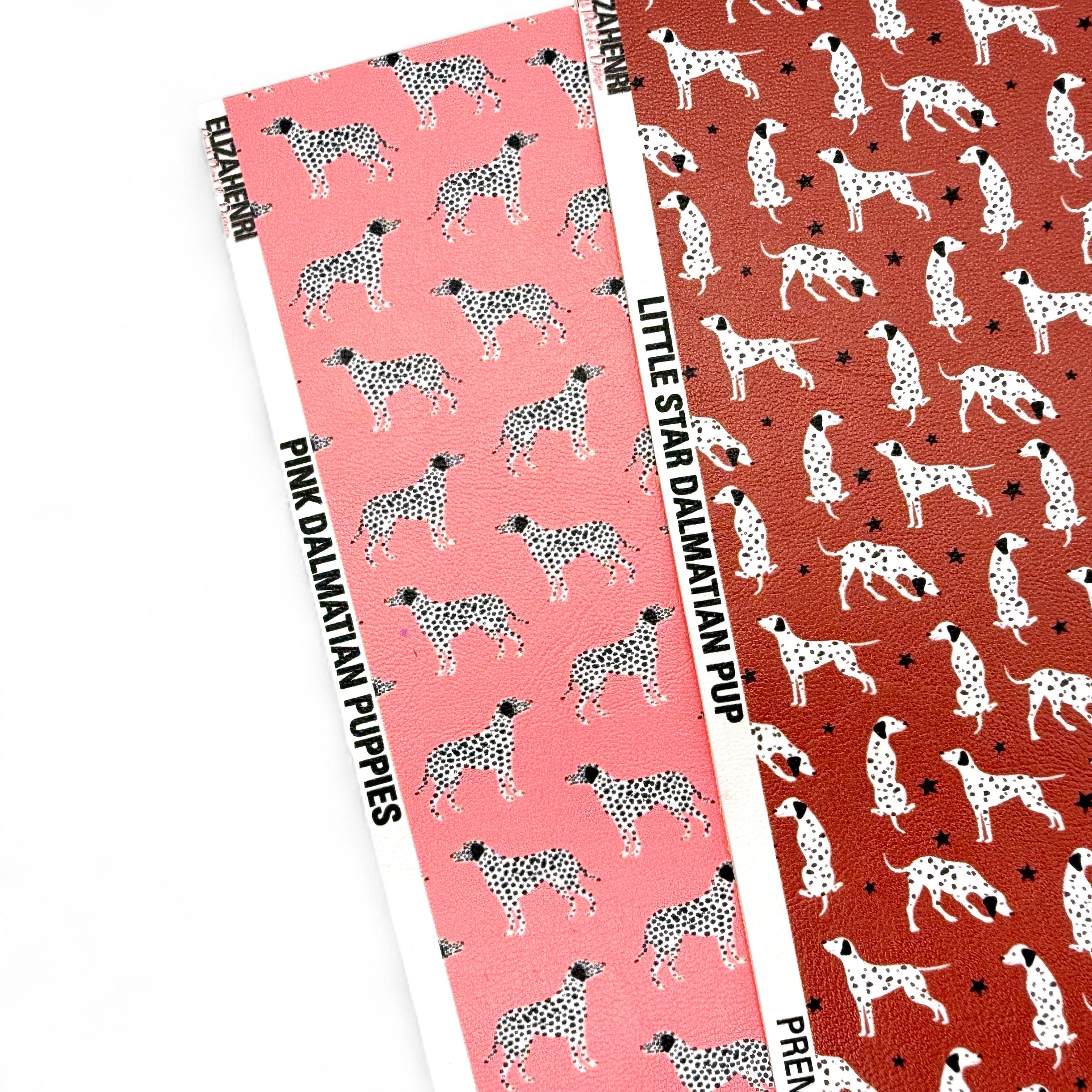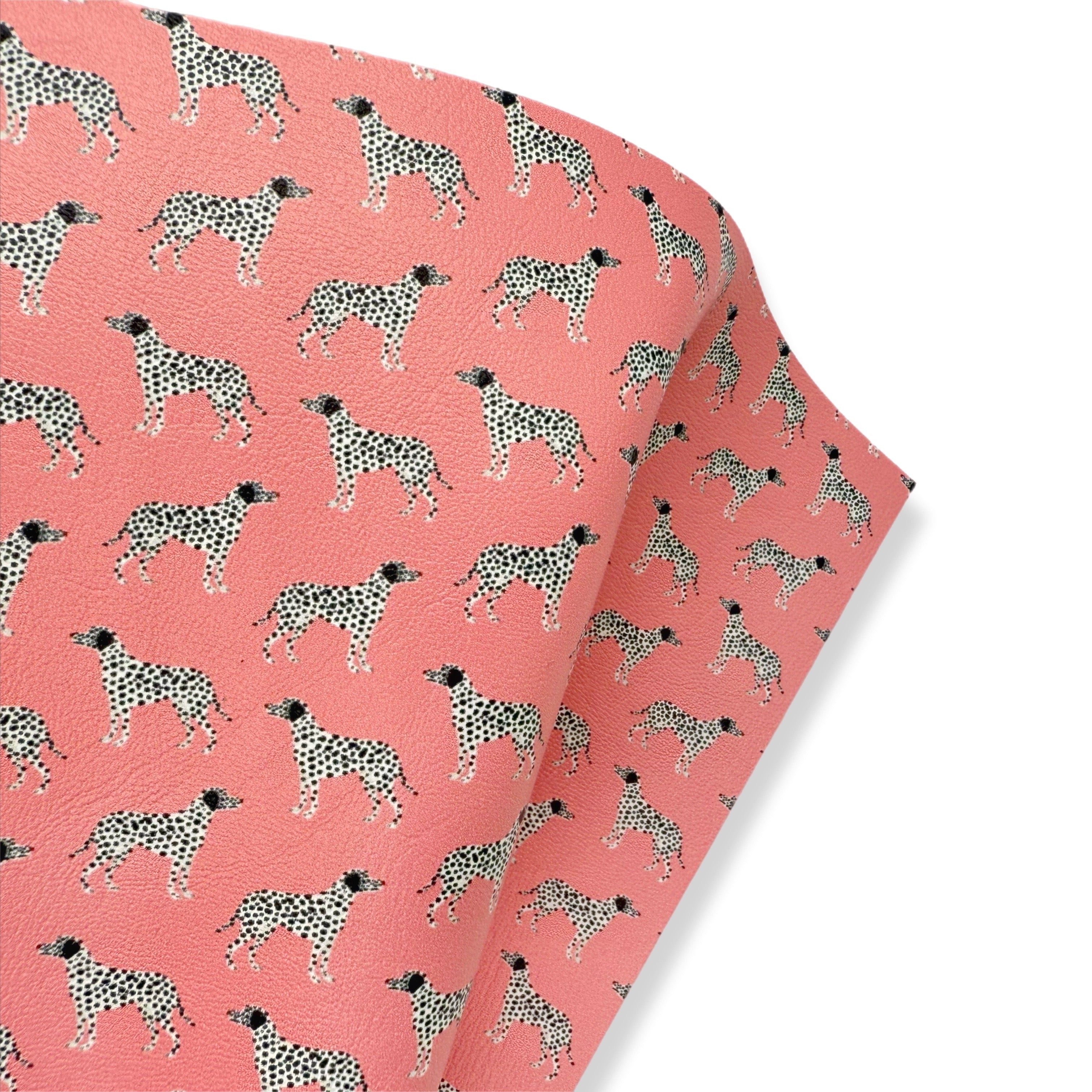 PINK DALMATIAN PUPPIES PREMIUM FAUX LEATHER FABRICS