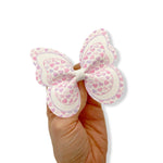 PINK & LILAC DOODLE HEARTS BUTTERFLY PINCH BOWS - DIY CUT OUT FAUX LEATHER FABRIC SHEETS
