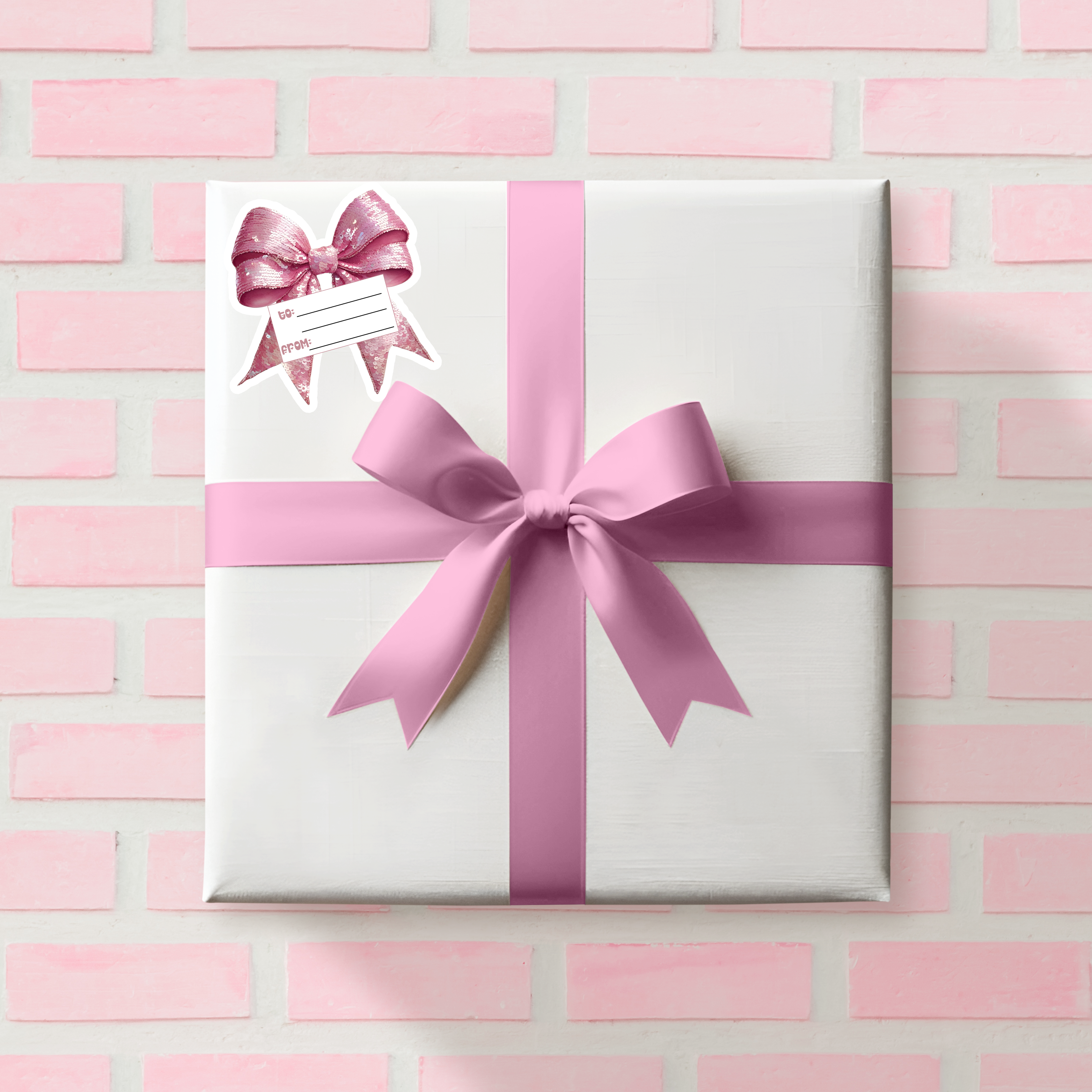 PINK SEQUIN CUSTOM CUT SOLVENT GIFT TAG STICKER