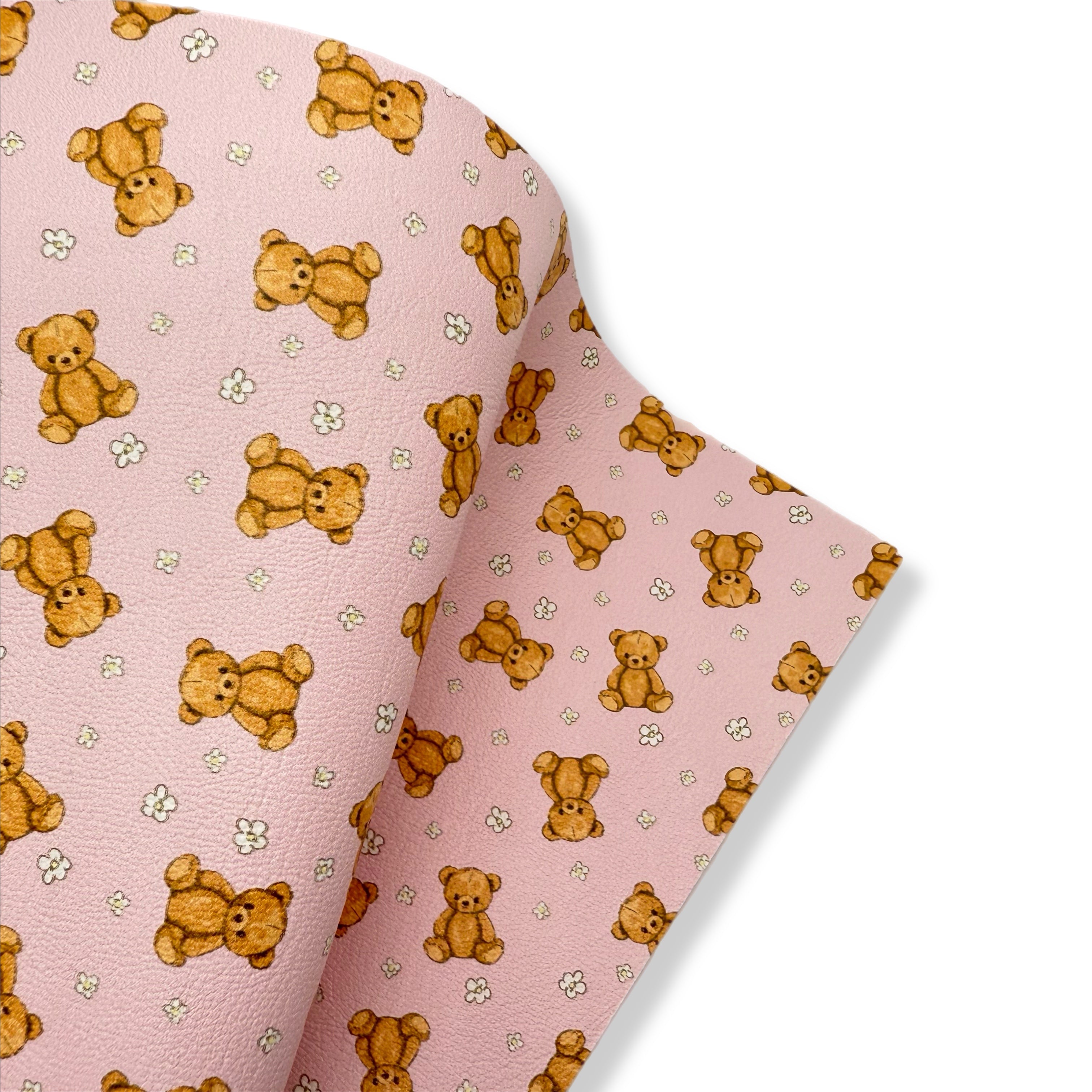 PINK TEDDY & DAISIES PREMIUM FAUX LEATHER FABRICS