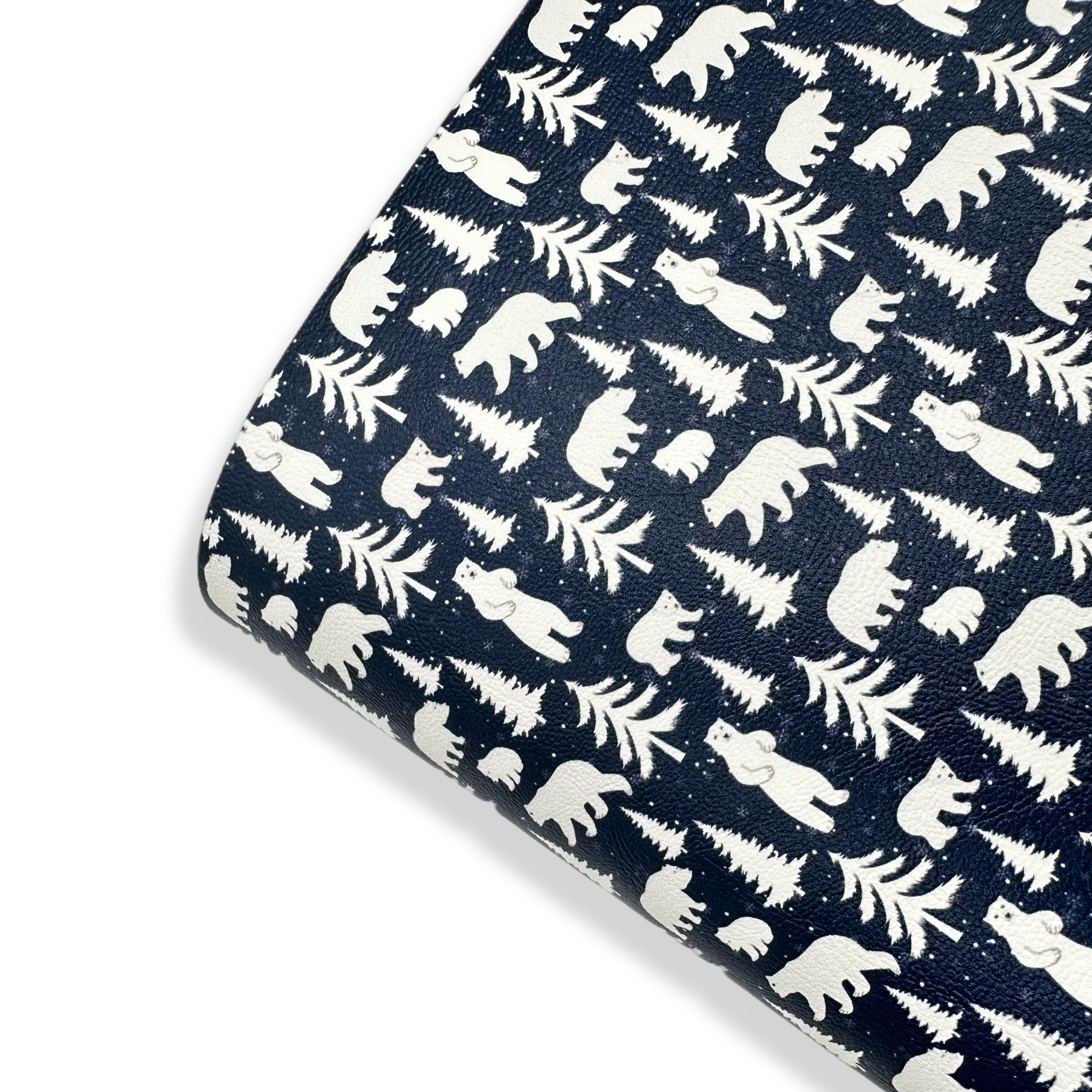 Polar Bear Forest Navy Premium Faux Leather Fabric