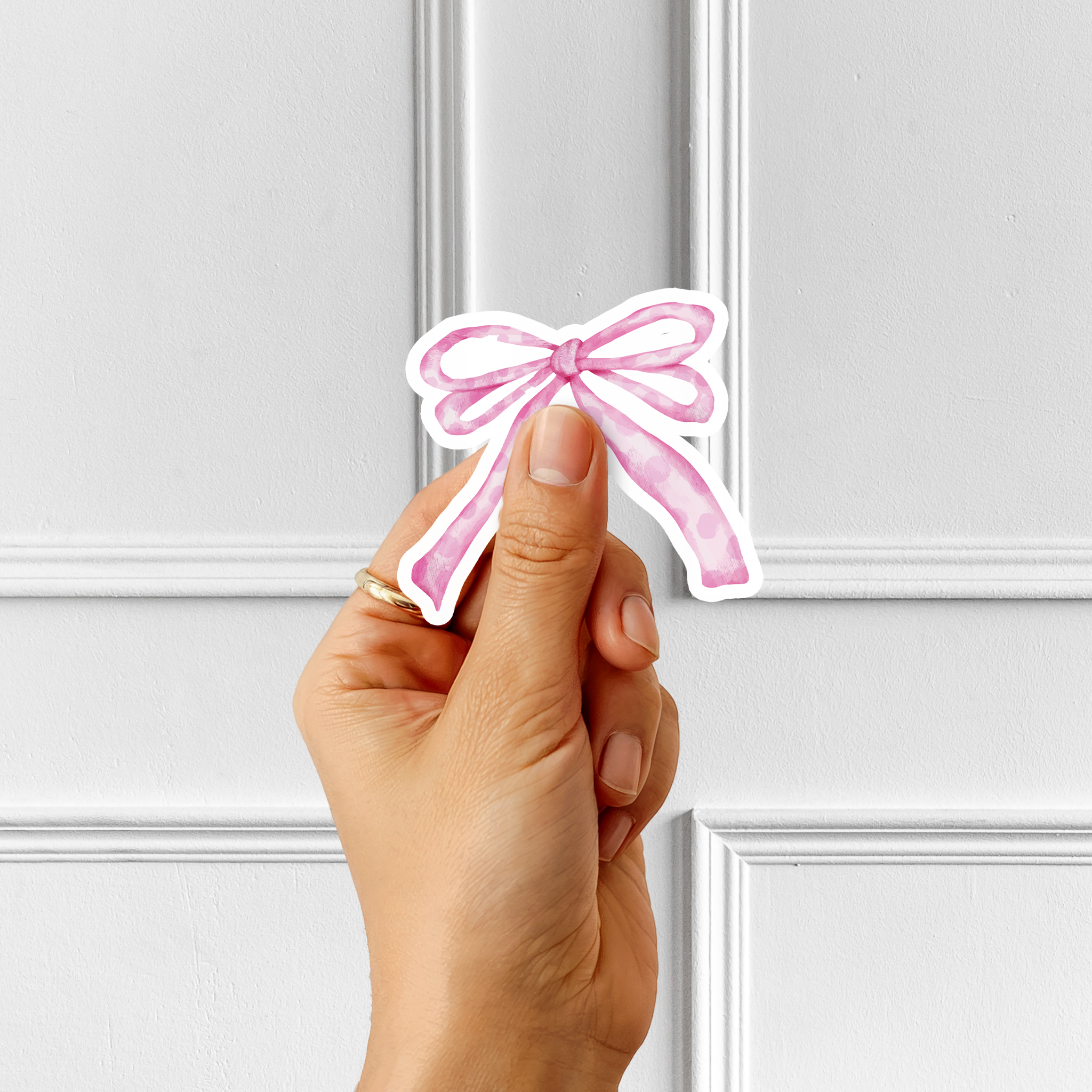PRETTY CUSTOM CUT PINK BOW SOLVENT STICKER- GLOSSY OR MATTE