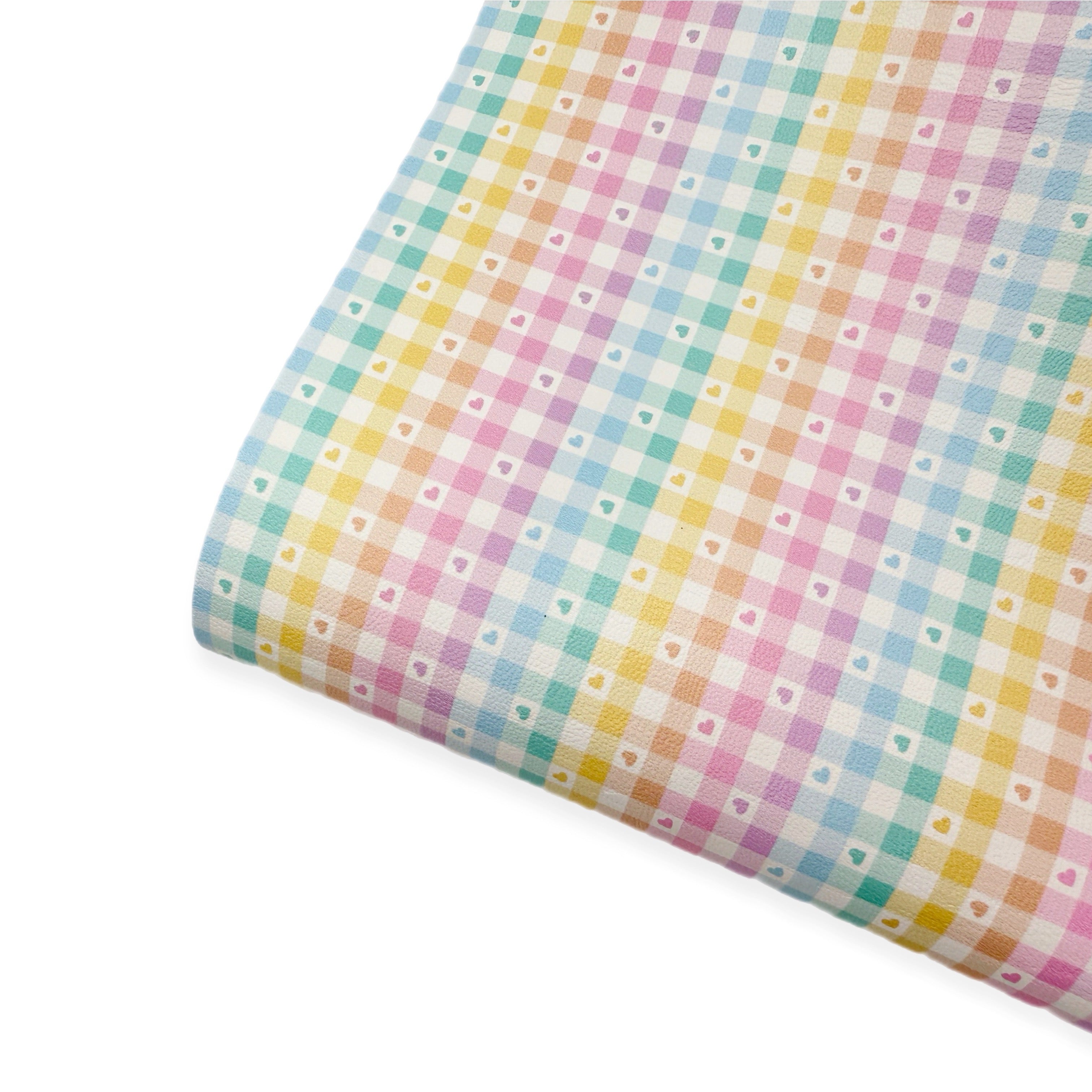 RAINBOW HEARTS CHECK | PREMIUM FAUX LEATHER FABRICS