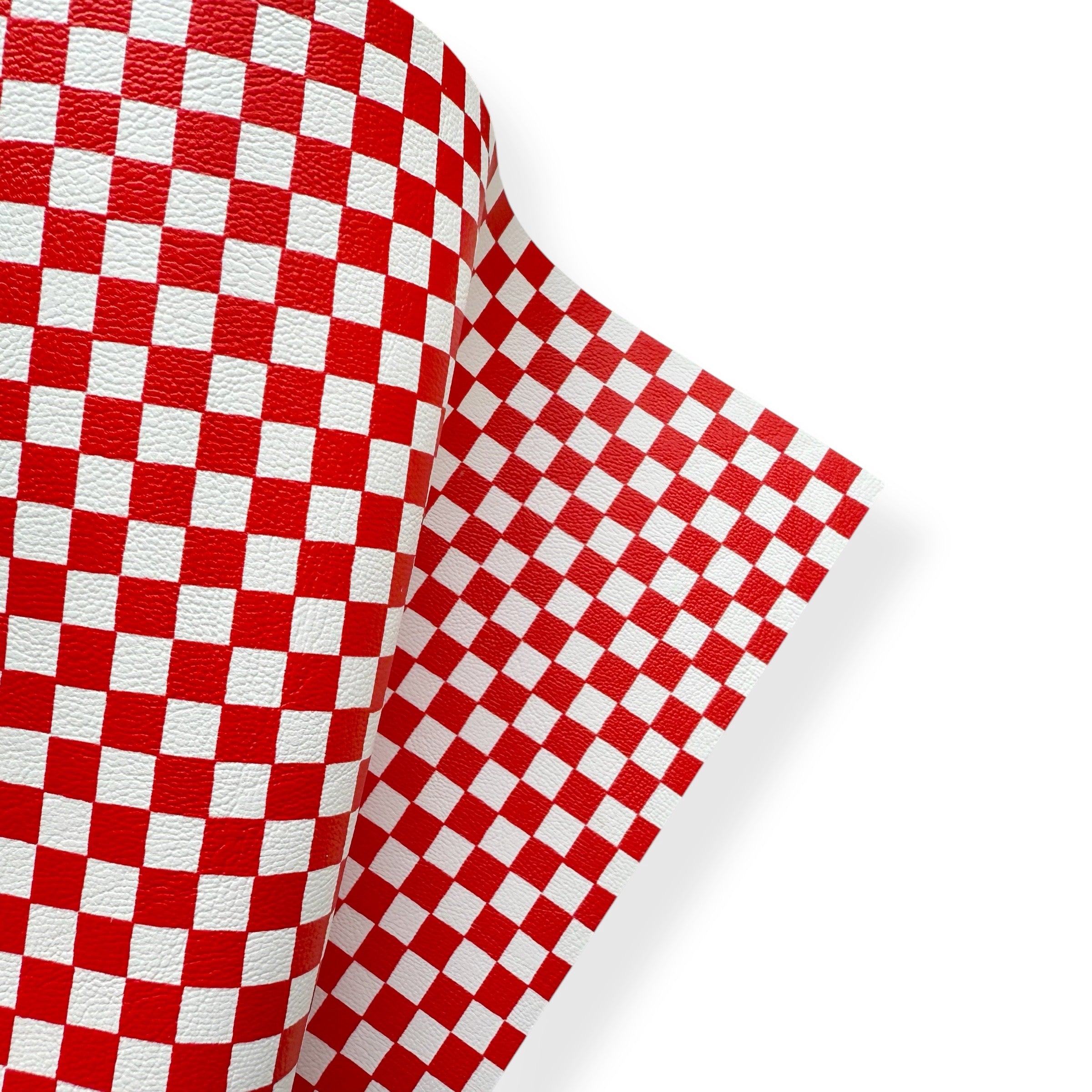 RED & WHITE CHECKER PREMIUM FAUX LEATHER FABRICS