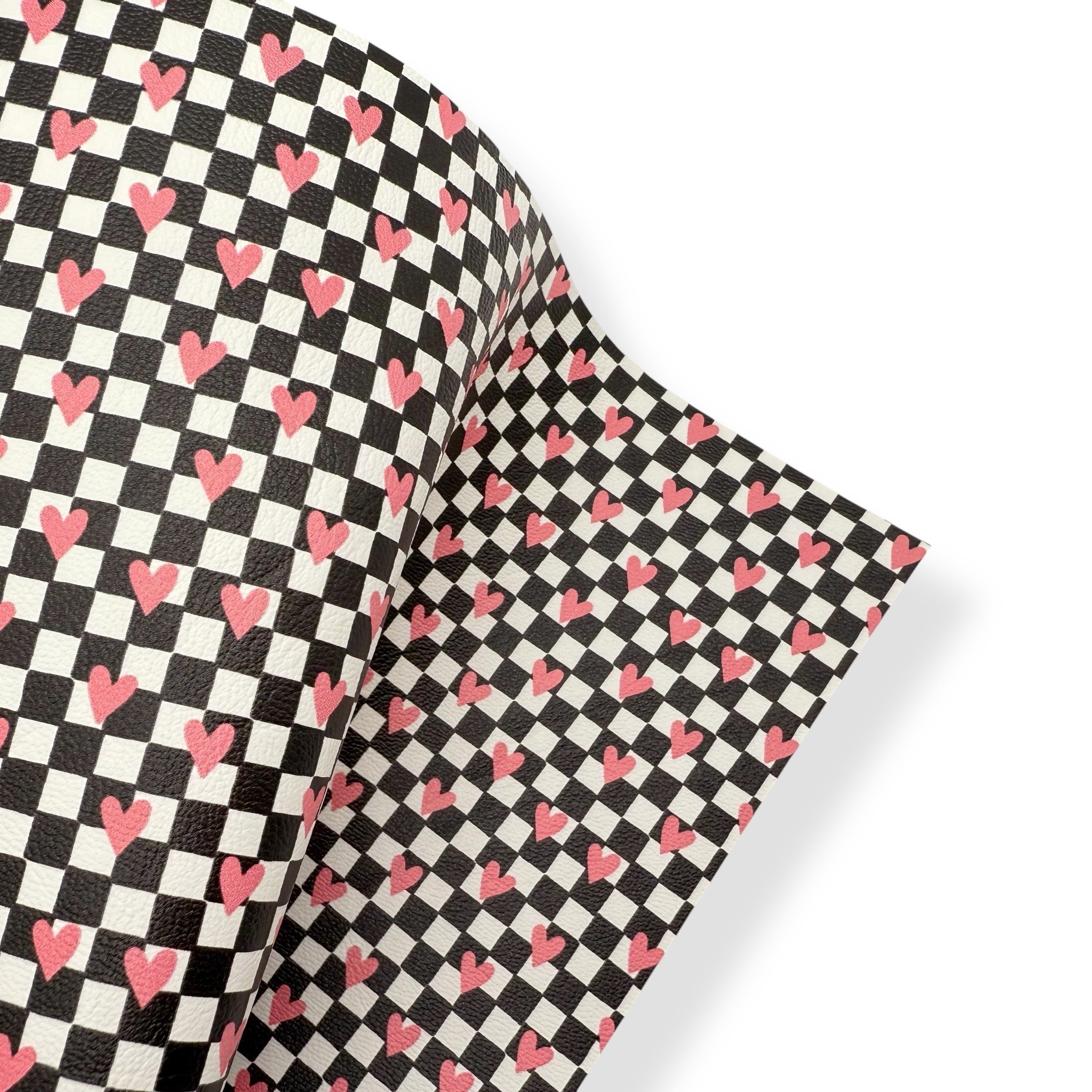 RETRO CHECK PINK HEART PREMIUM FAUX LEATHER FABRICS