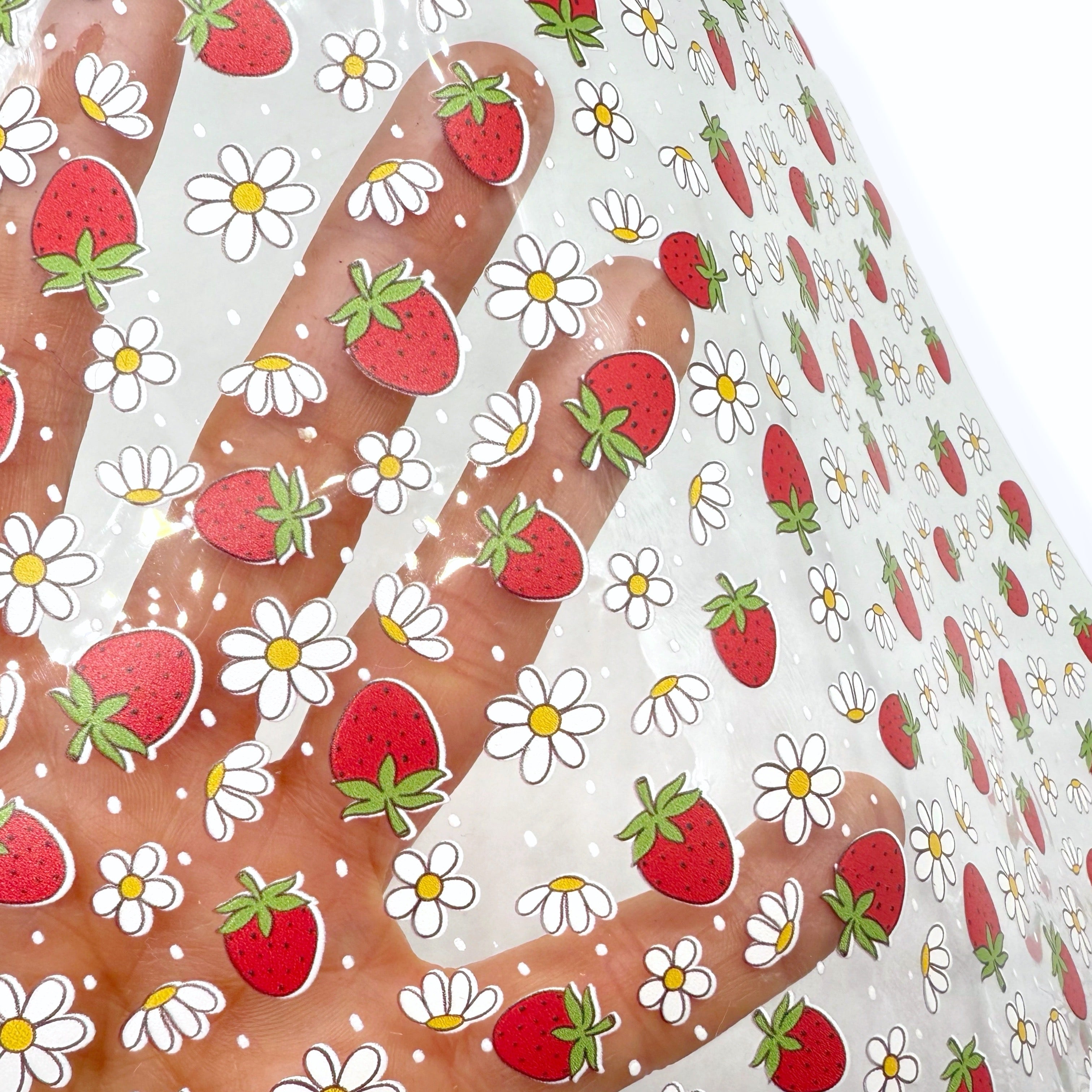 STRAWBERRIES & DAISIES JELLY TRANSPARENT FABRIC