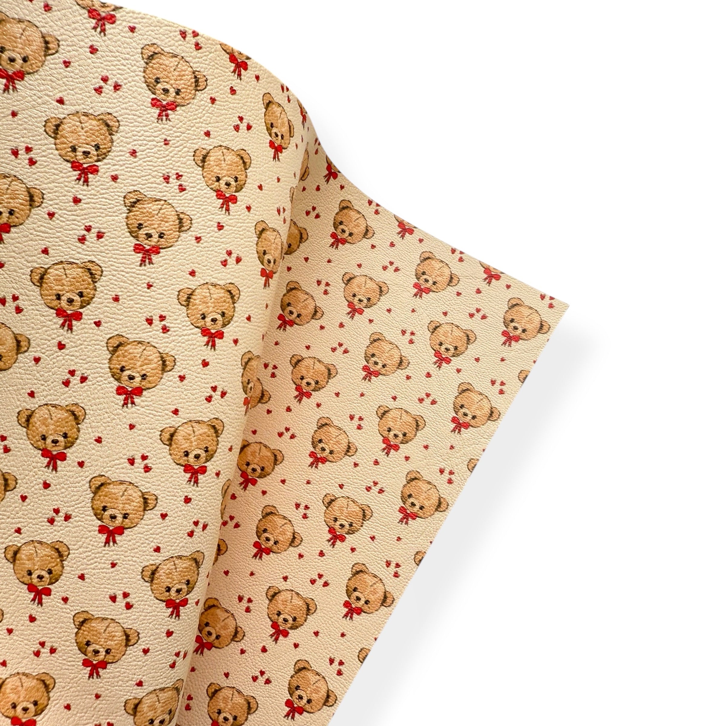 SWEET LITTLE RED BOW BEAR PREMIUM FAUX LEATHER FABRICS