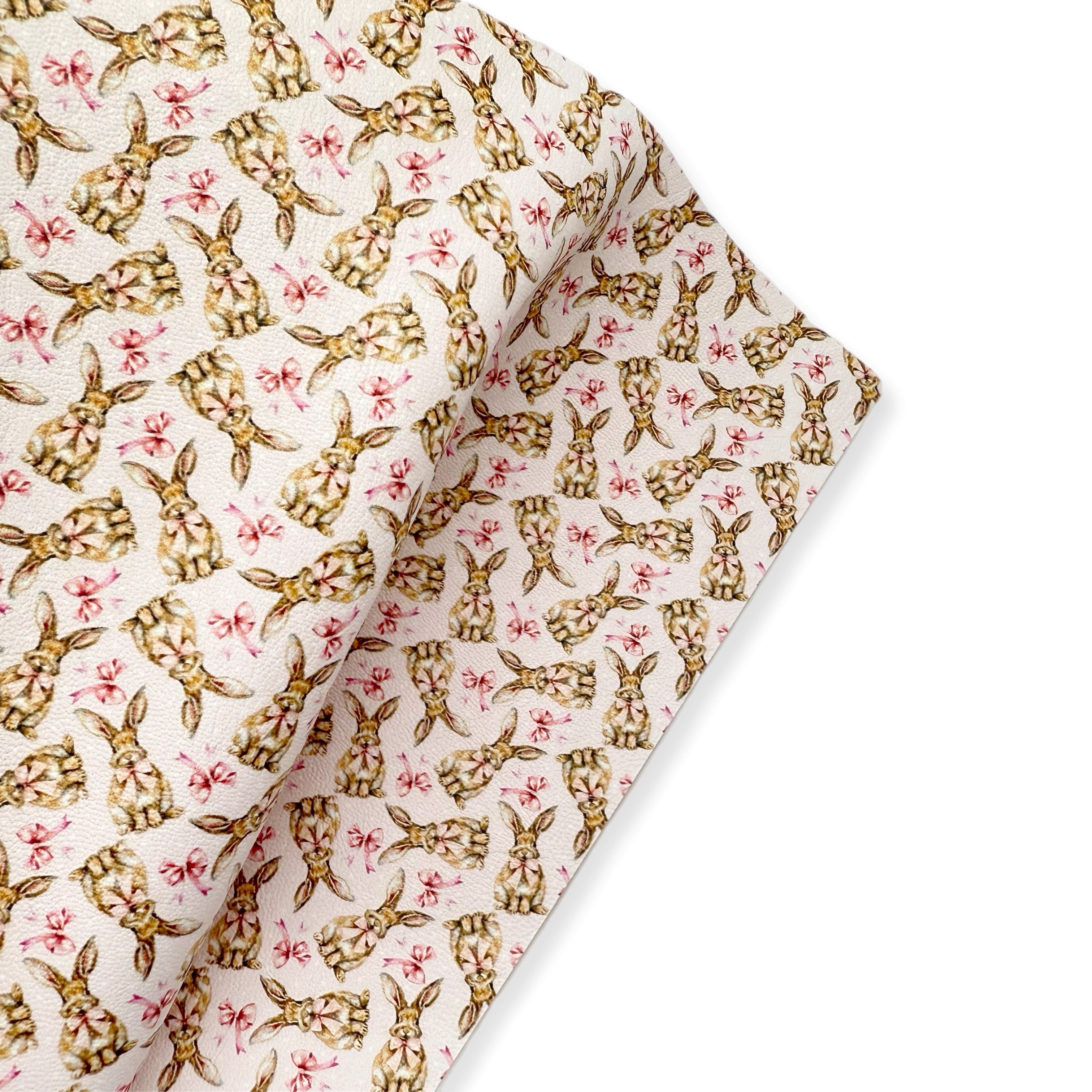 SWEET PINK BUNNY BOWS PREMIUM FAUX LEATHER FABRICS