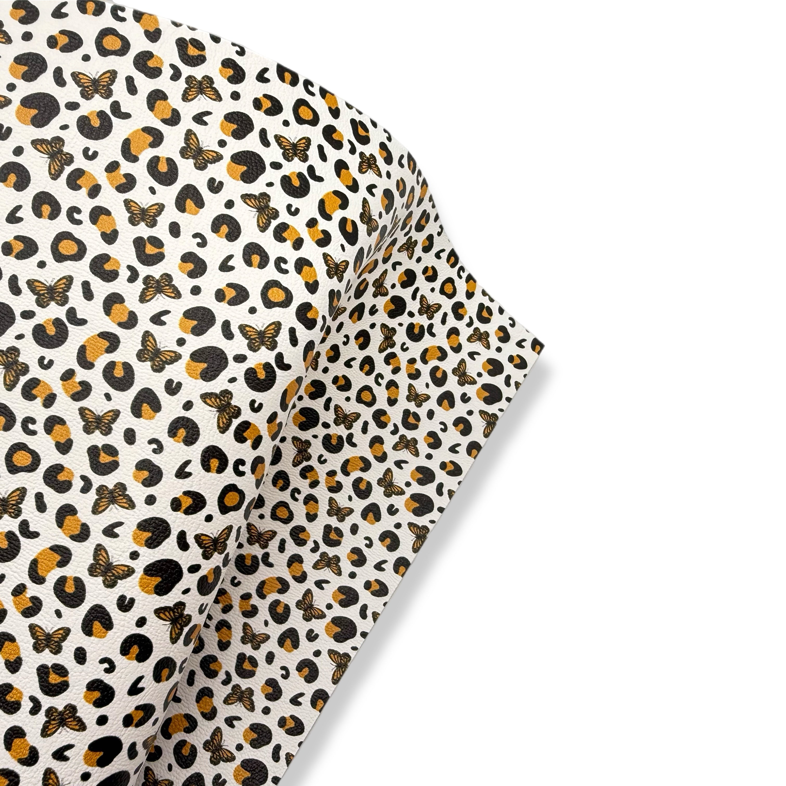 WHITE BUTTERFLY LEOPARD PREMIUM FAUX LEATHER FABRICS