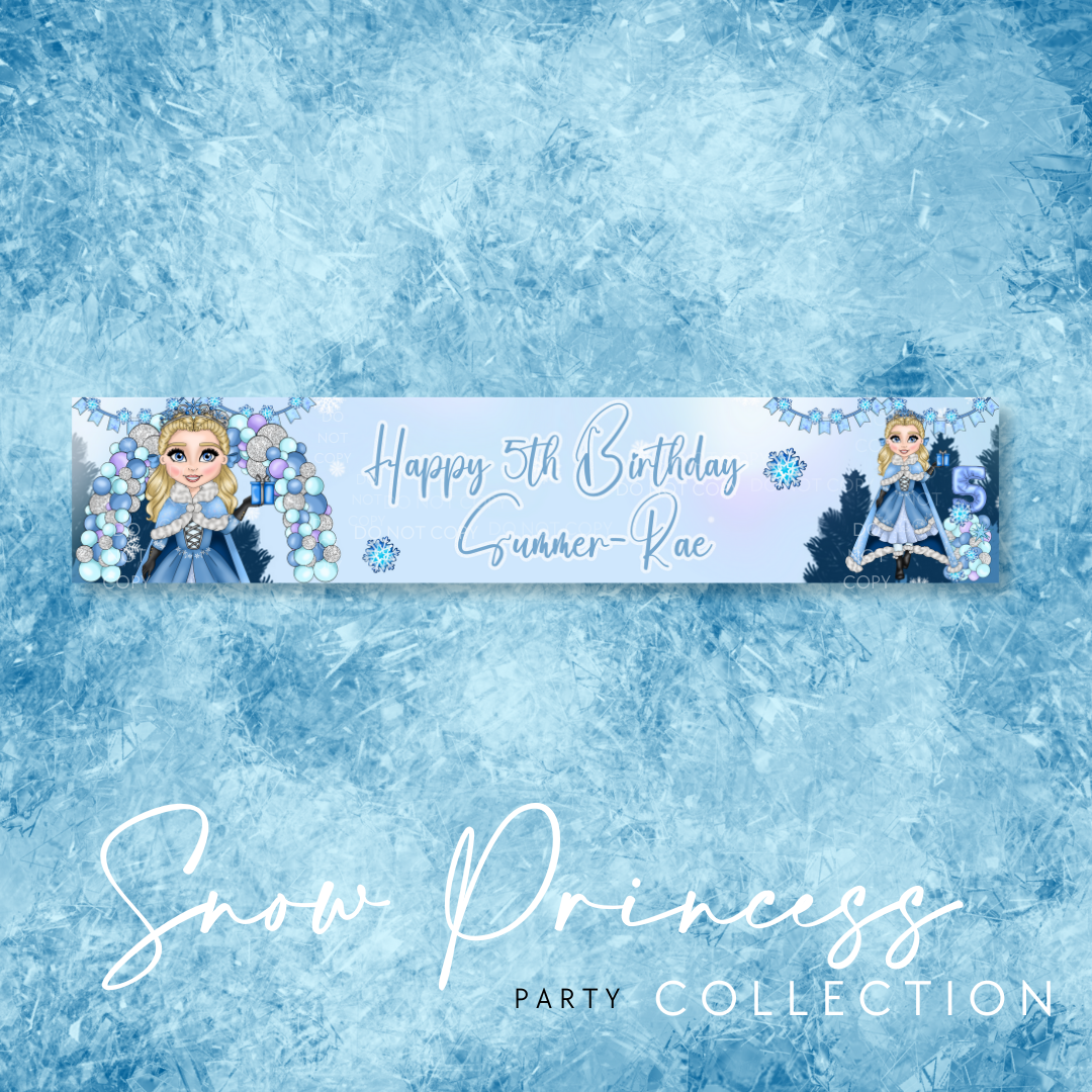 Winter Snow Princess Birthday Party Personalised Faux Leather Birthday & Celebration Banners