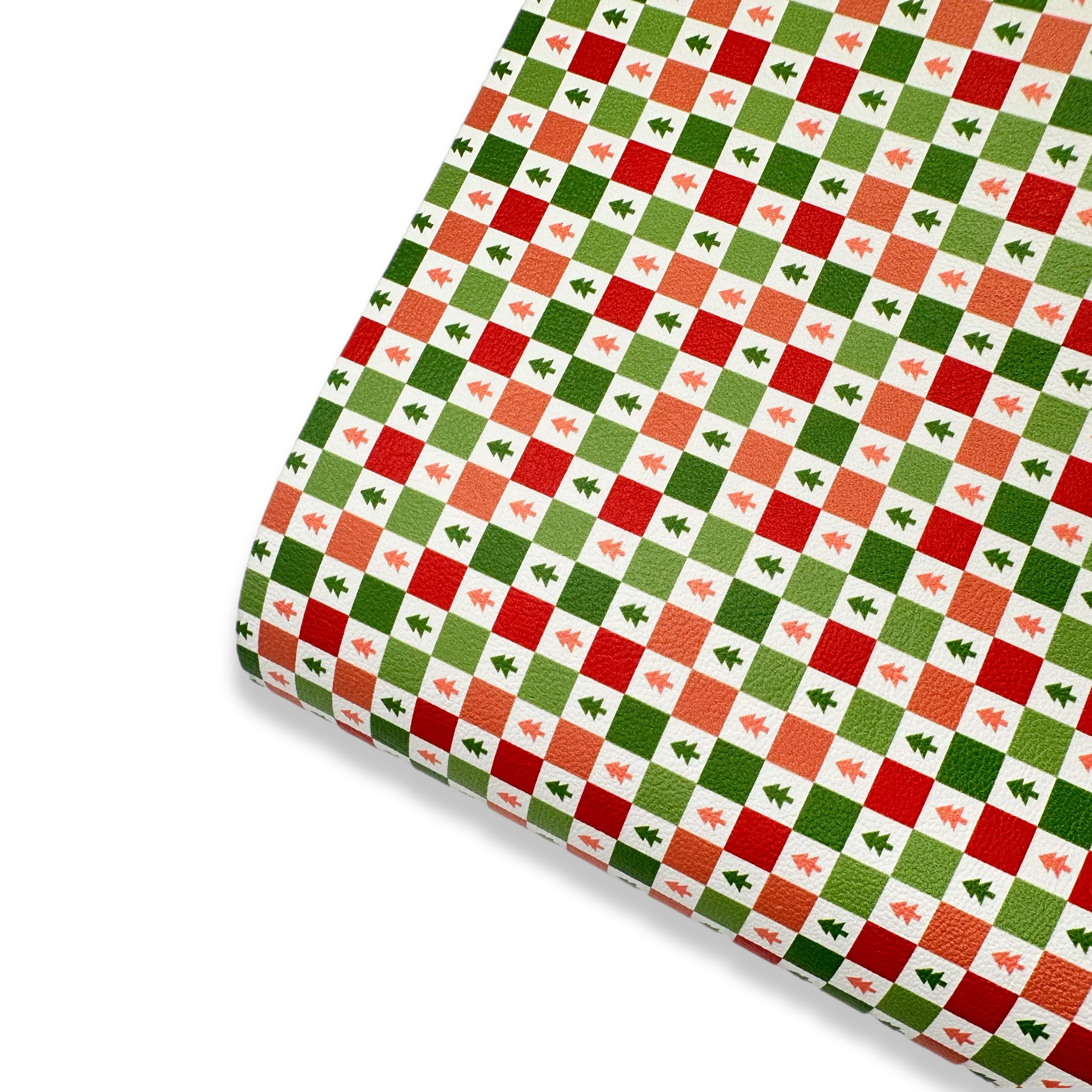 Xmas Tree Check- Red & Green Premium Faux Leather Fabric