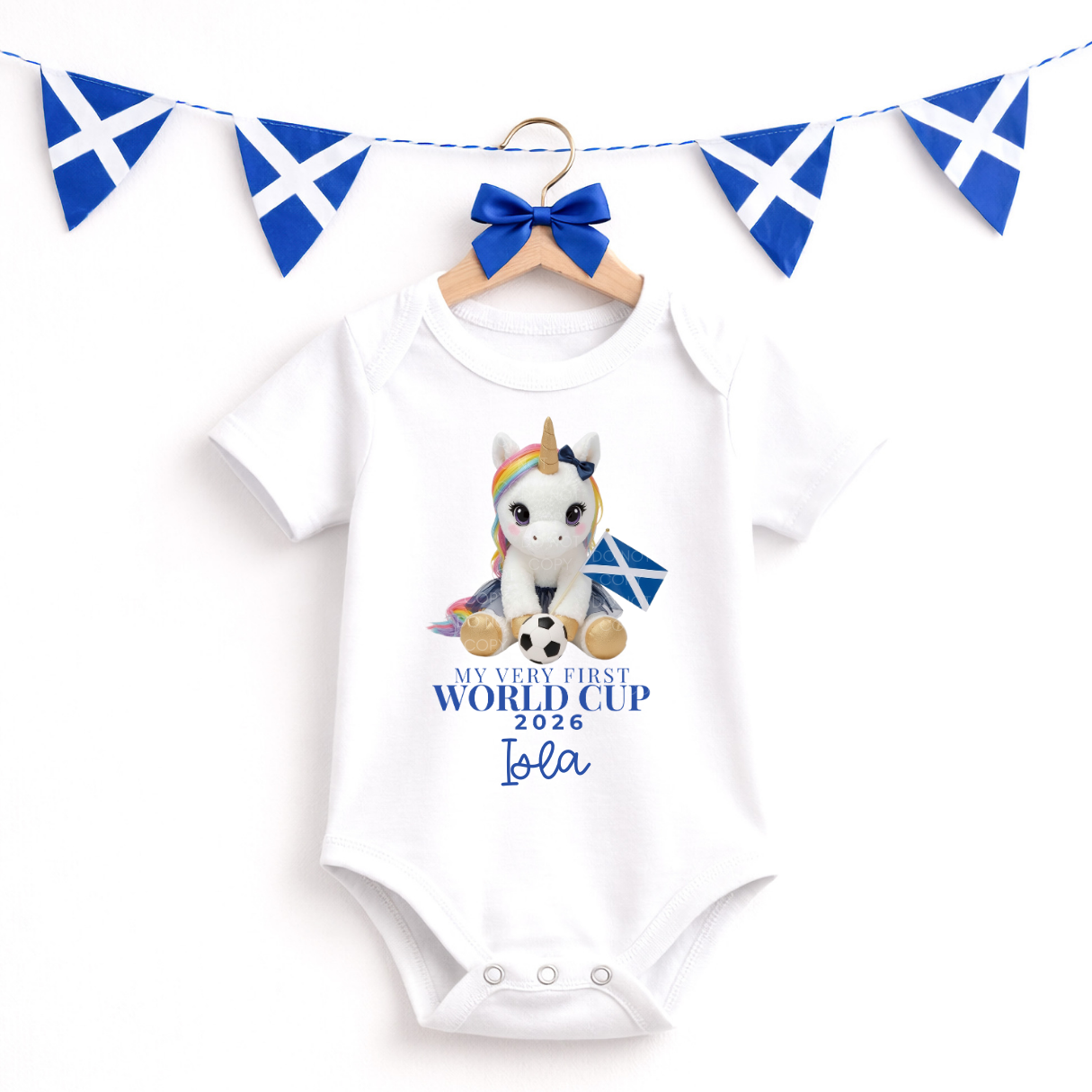 CUSTOM DTF TRANSFER - MY VERY FIRST WORLD CUP 2026- SCOTTISH UNICORN GIRL