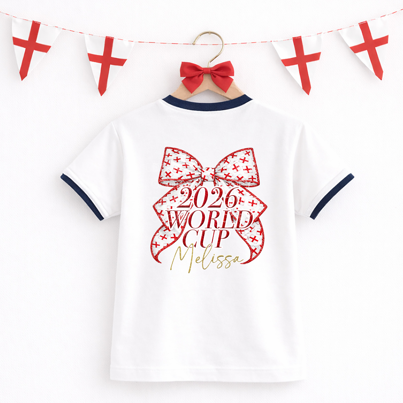 CUSTOM DTF TRANSFER- WORLD CUP 2026- ENGLAND BOW- BACK FOOTBALL SHIRT