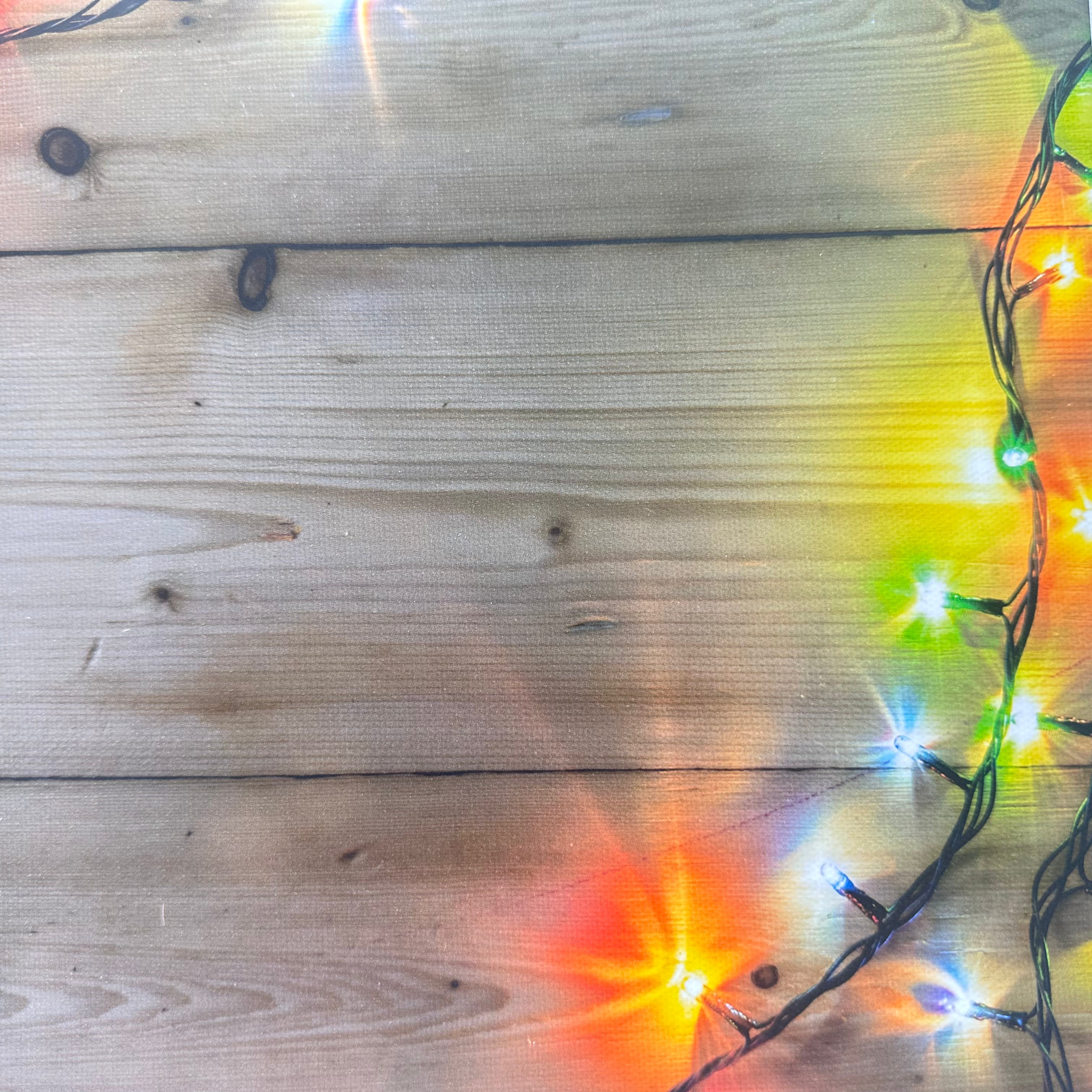 Coloured Xmas Lights Wooden Effect Canvas Photography Background