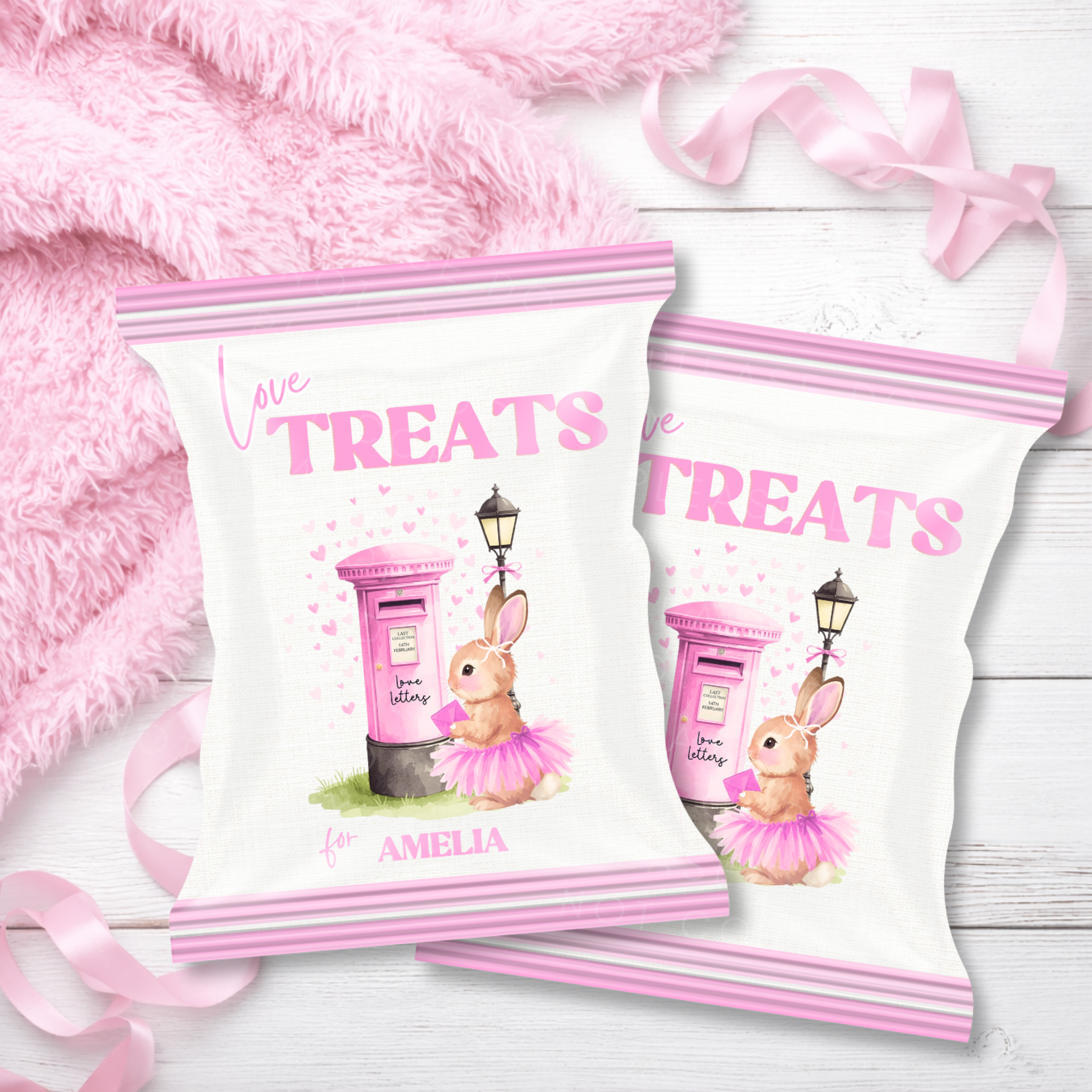 VALENTINES- PINK BUNNY LOVE MAIL- CHOCOLATE WRAPPERS