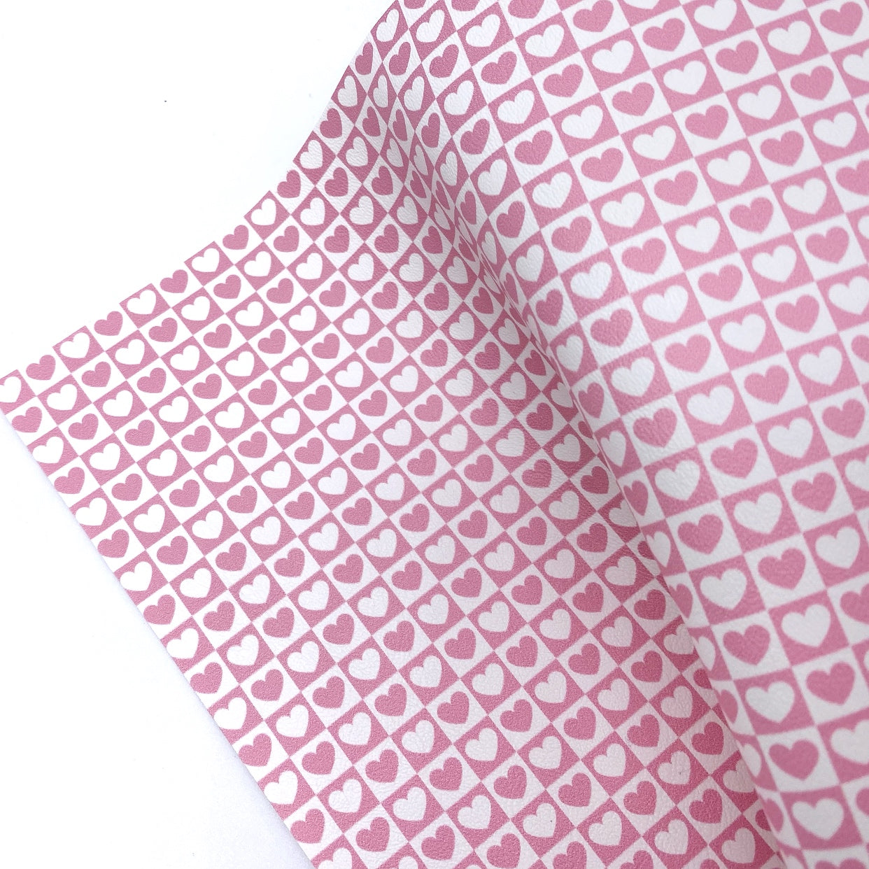 Retro Pink Check Hearts Premium Faux Leather Fabric Sheets