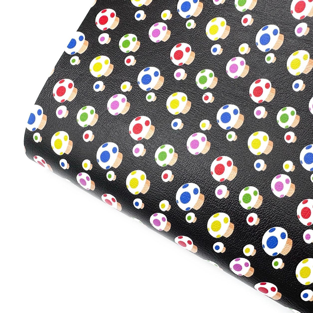 Black Rainbow Mushrooms Premium Faux Leather Fabric Sheets