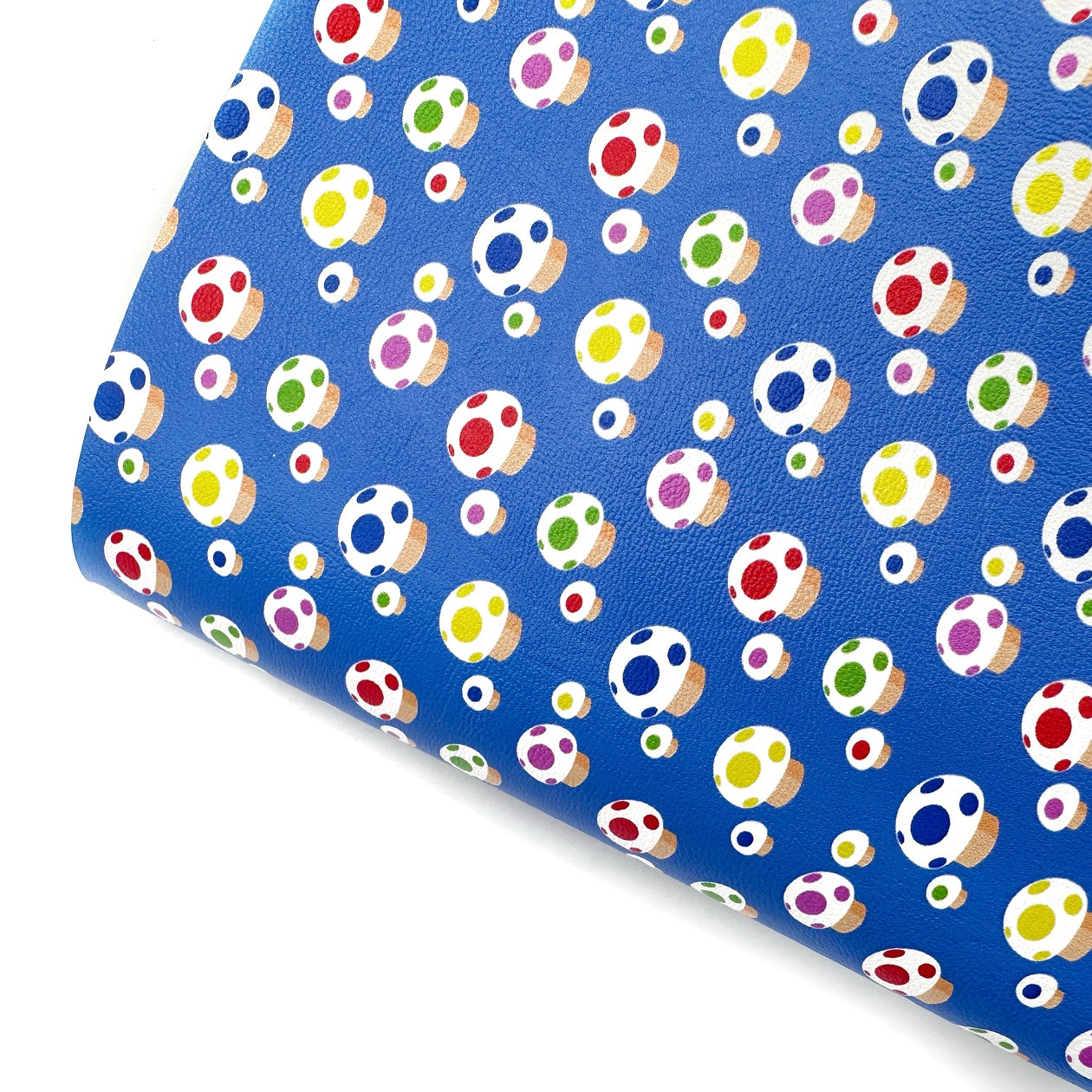 Blue Rainbow Mushrooms Premium Faux Leather Fabric Sheets