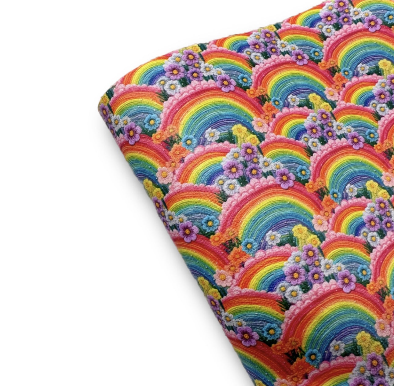 Embroidered Rainbow Waves Premium Faux Leather Fabric Sheets