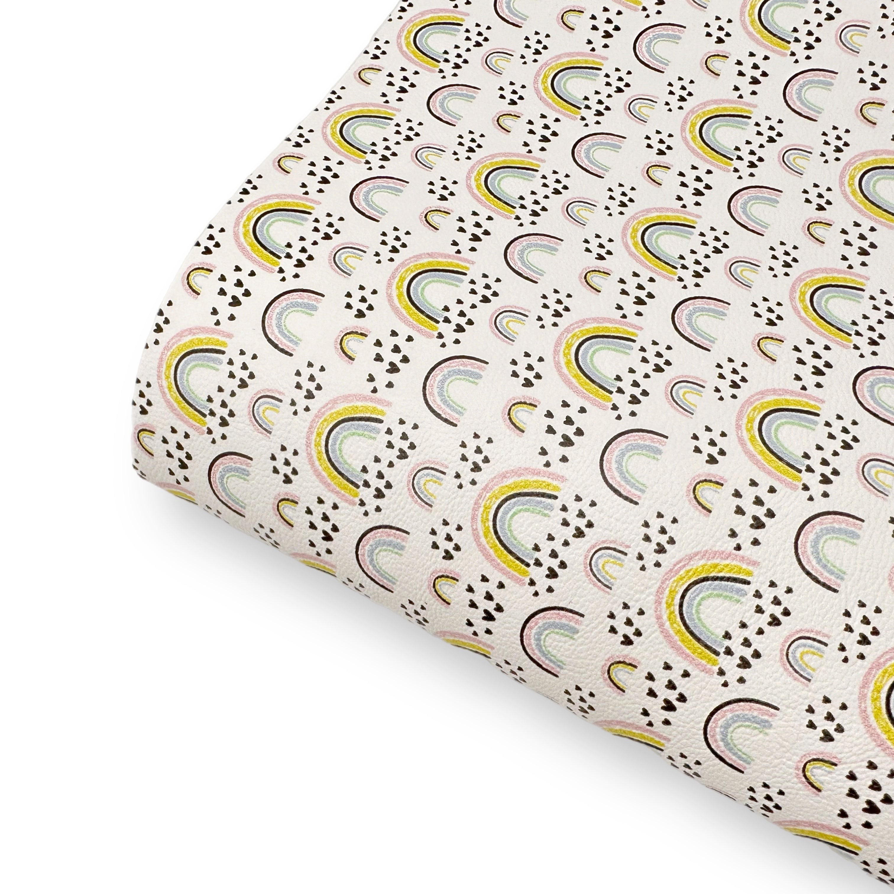 Rainbow Heart Showers Premium Faux Leather Fabric
