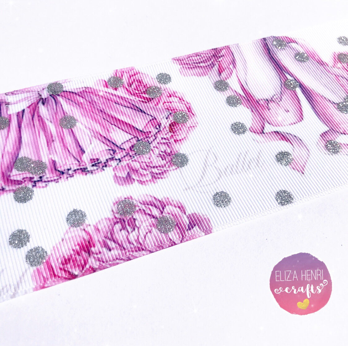 Ballerina Silver Glitter Dots Grosgrain Ribbon 3''