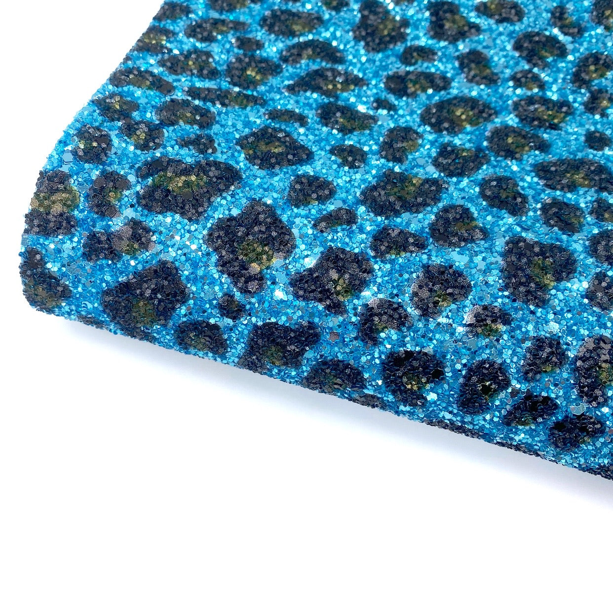 Bold Blue Leopard Lux Premium Chunky Glitter Fabric