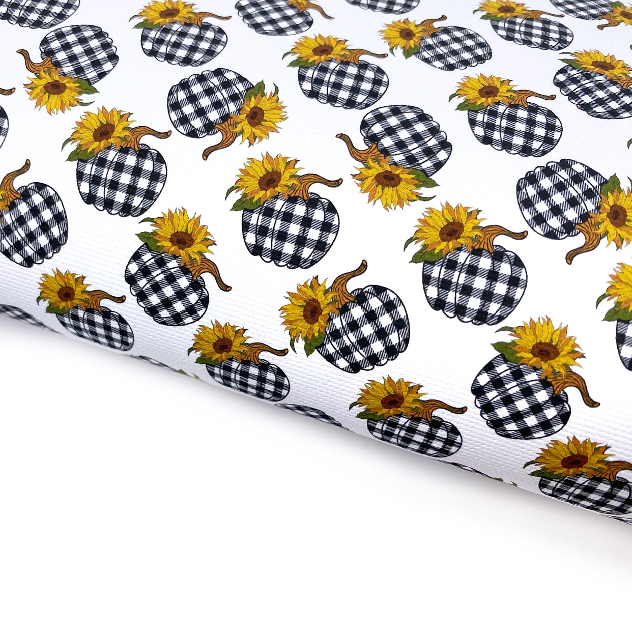 Checked Sunflower Pumpkins Lux Premium Canvas Bow Fabrics