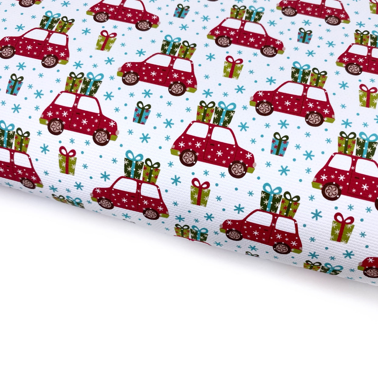 Driving Home for Christmas Lux Premium Canvas Bow Fabrics