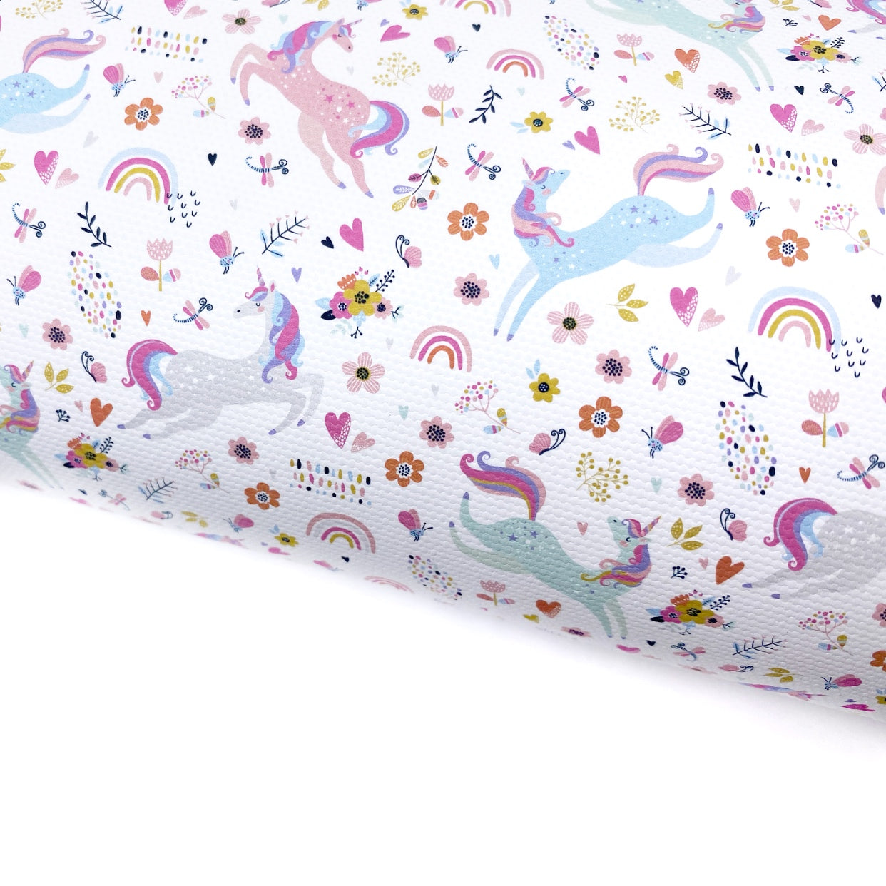 Floral Rainbow Unicorns Lux Premium Canvas Bow Fabrics