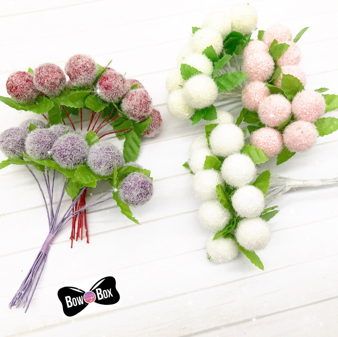 Please note as these are foam so they are quite delicate and although we do our best to handle with care they are very fragile. They are in bundles of 10 balls and are attached on wire that can be snipped off to sit flat on a bow or floral crown.
