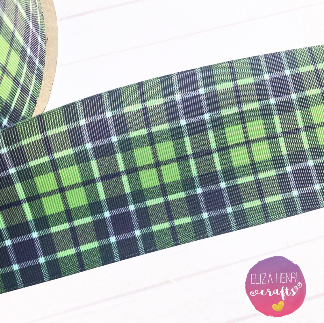Green & Navy Blue Tartan Grosgrain Ribbon 2'' or 3''