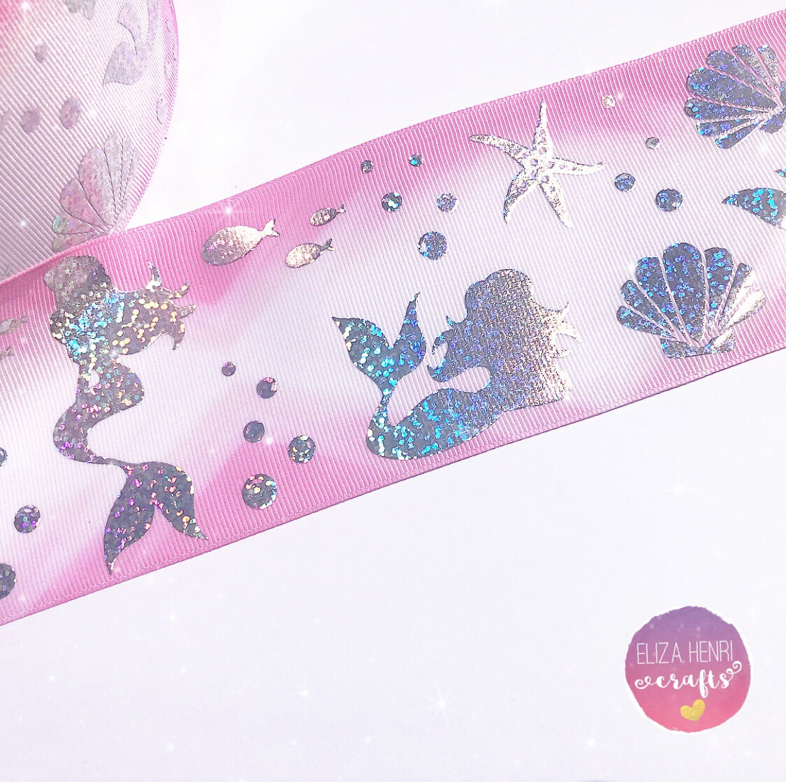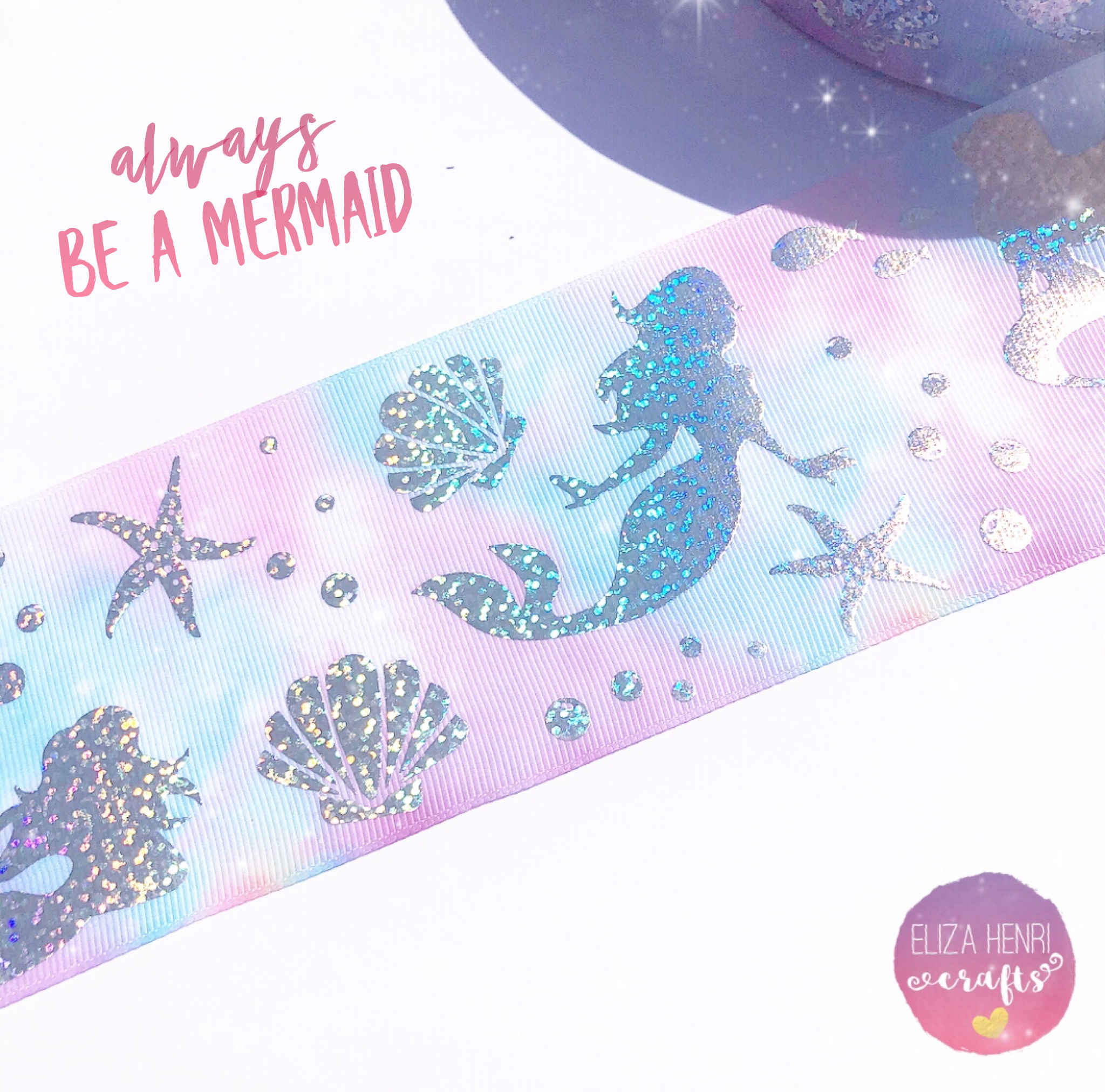 Mermaid Foiled Holographic Grosgrain Ribbon 3''