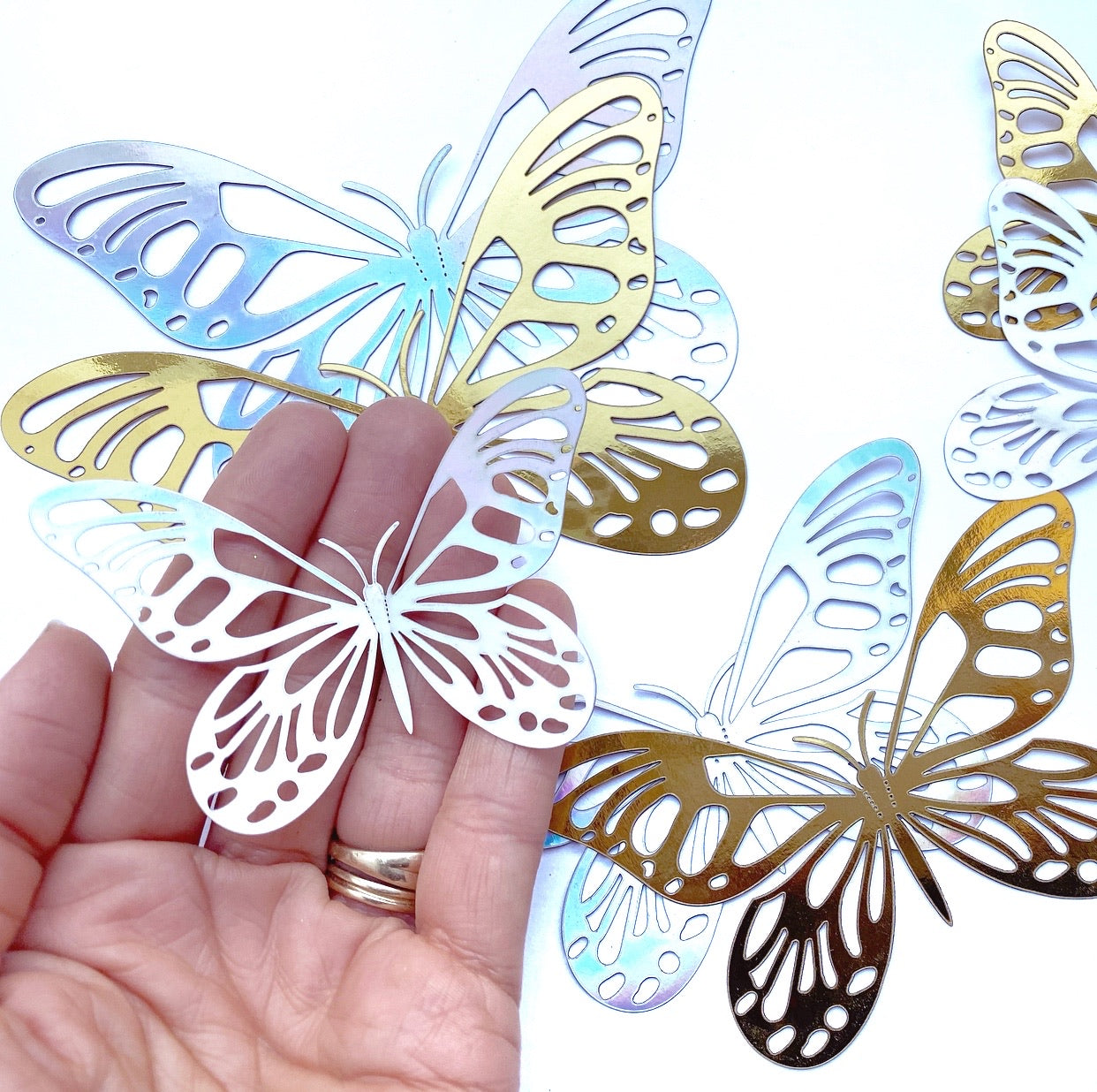 Metallic Gold and Iridescent Silver Butterfly cutout embellishment wings.