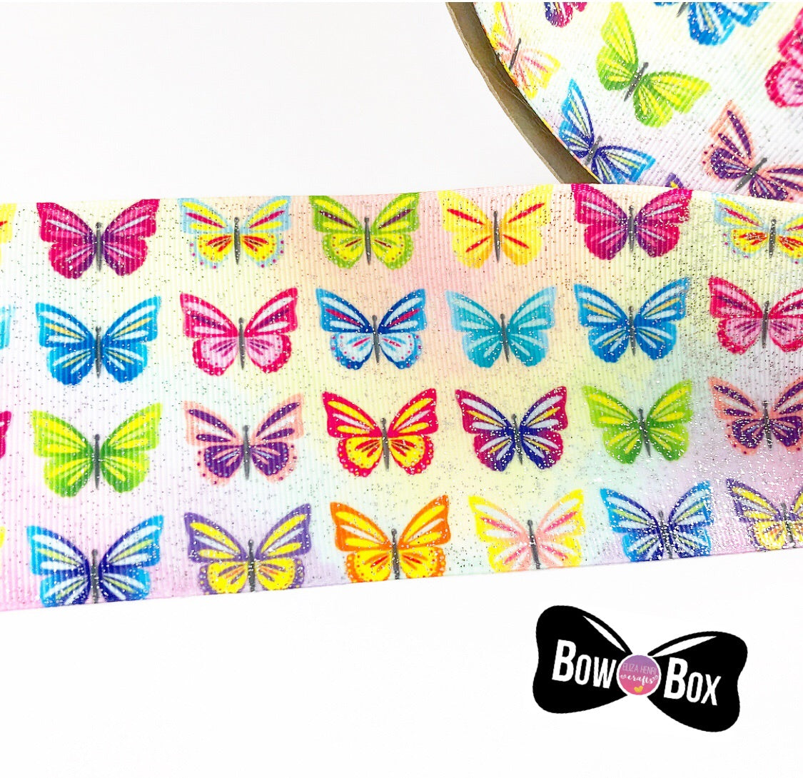 Pastel rainbow butterflies Glitter Grosgrain Ribbon 3''
