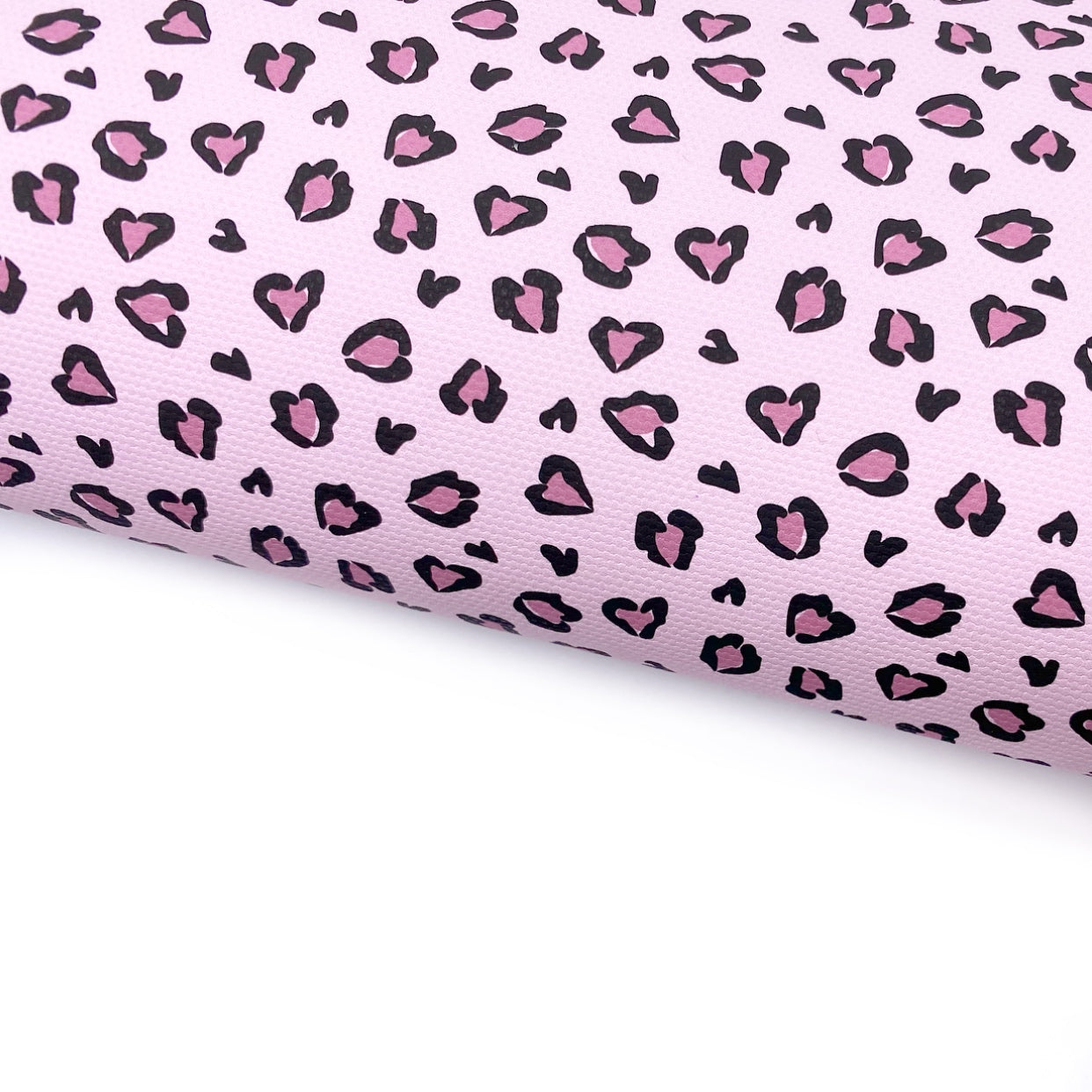 Pink Love Heart Leopard Lux Premium Printed Bow Fabrics